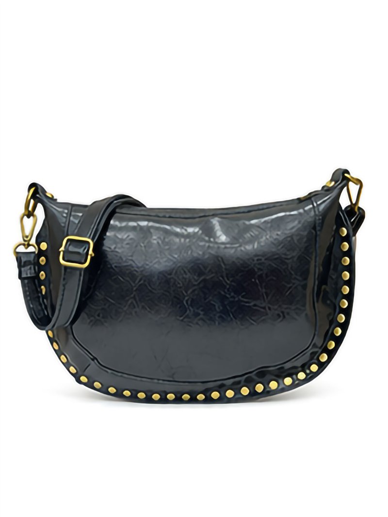 Bolsa de ombro em couro estilo meia-lua com tachas.
