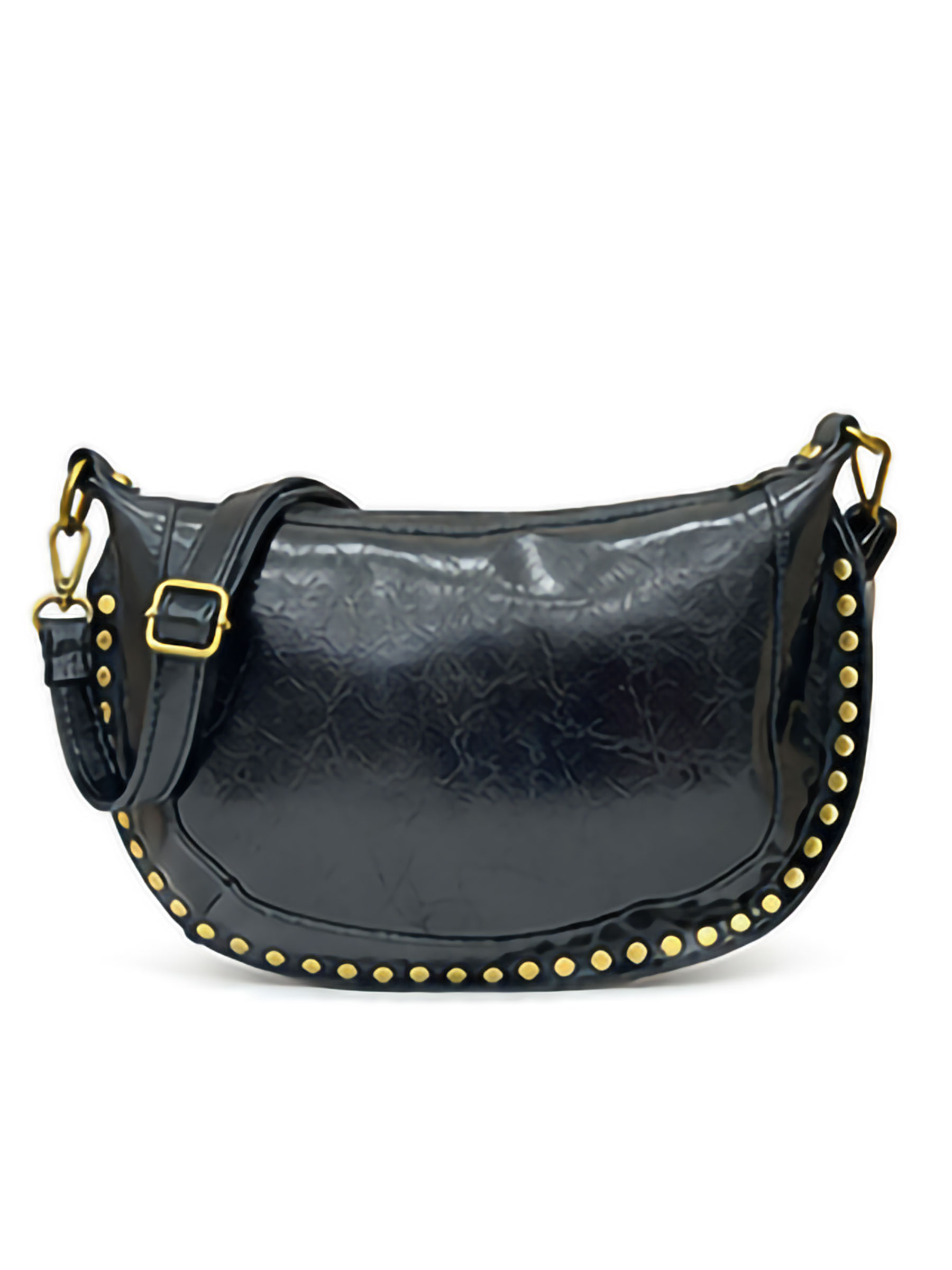 Bolsa transversal de couro em formato de lua crescente com tachas. Bolsa transversal de couro em formato de lua crescente com tachas.