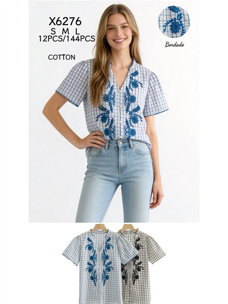 Mín. 6 Blusas Blusa bordada com laço DB-X726 Tamanhos: P-M-G.Coleção: Primavera/Verão 2026. Ver preço