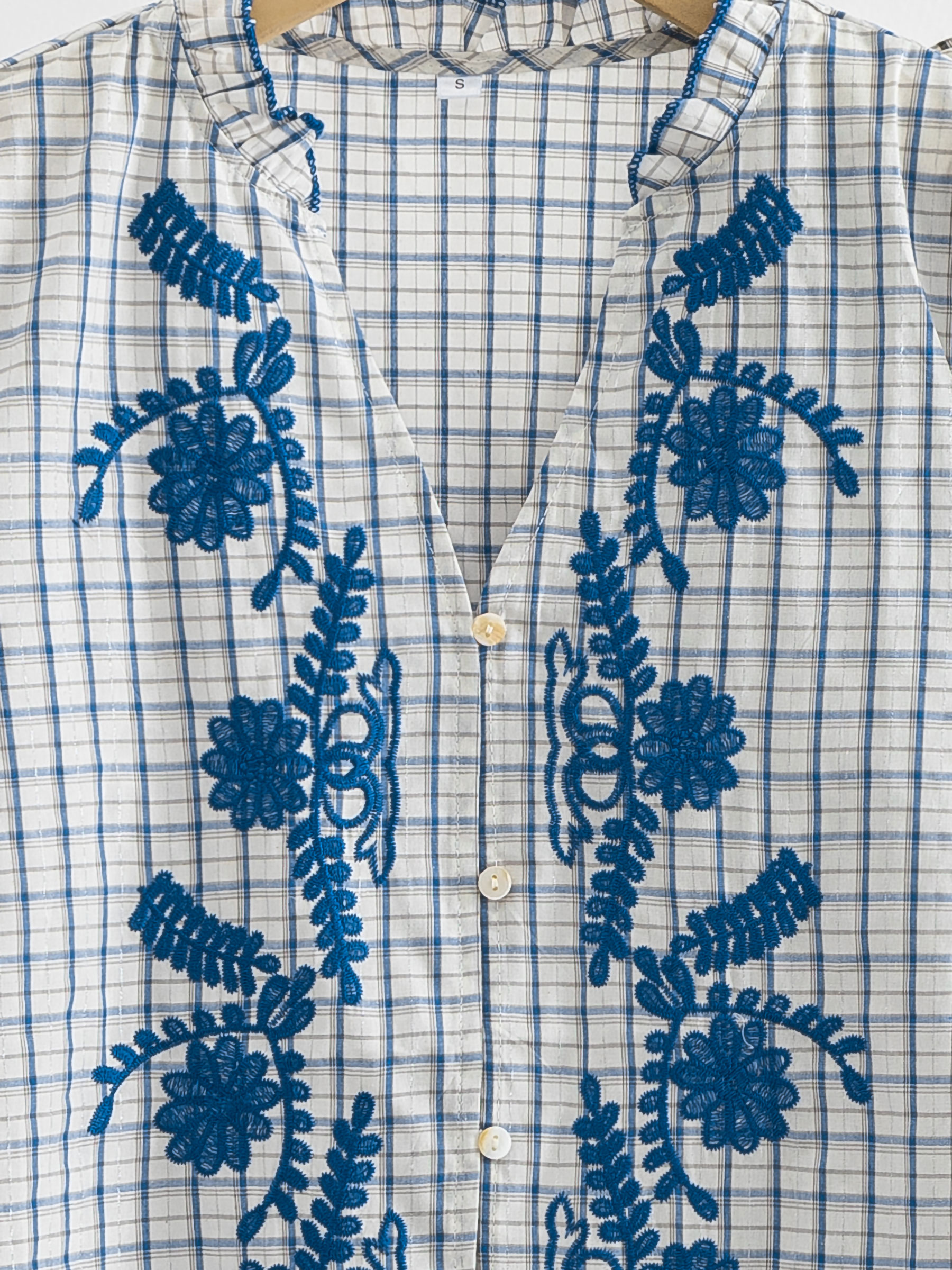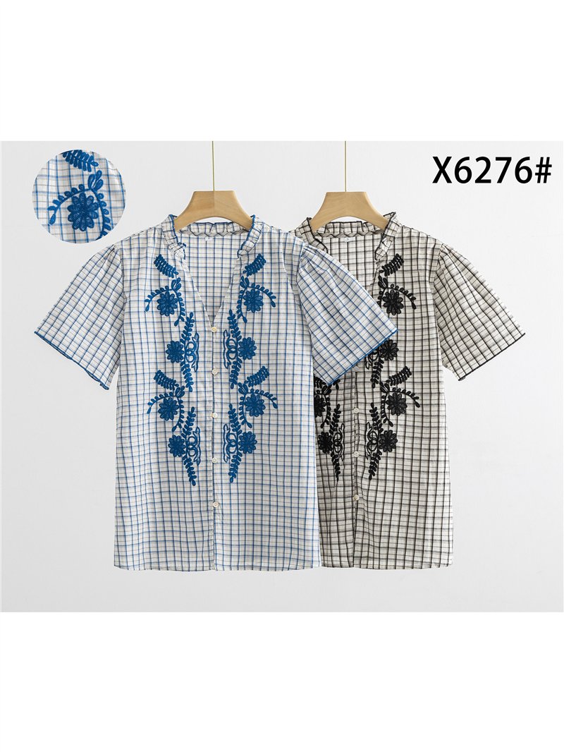 Mín. 6 Blusas Blusa de linho com bordado na barra e decote em V. MF-MF36406 Tamanhos: M-L-XL-XXLColeção: Primavera/Verão 2026. Ver preço