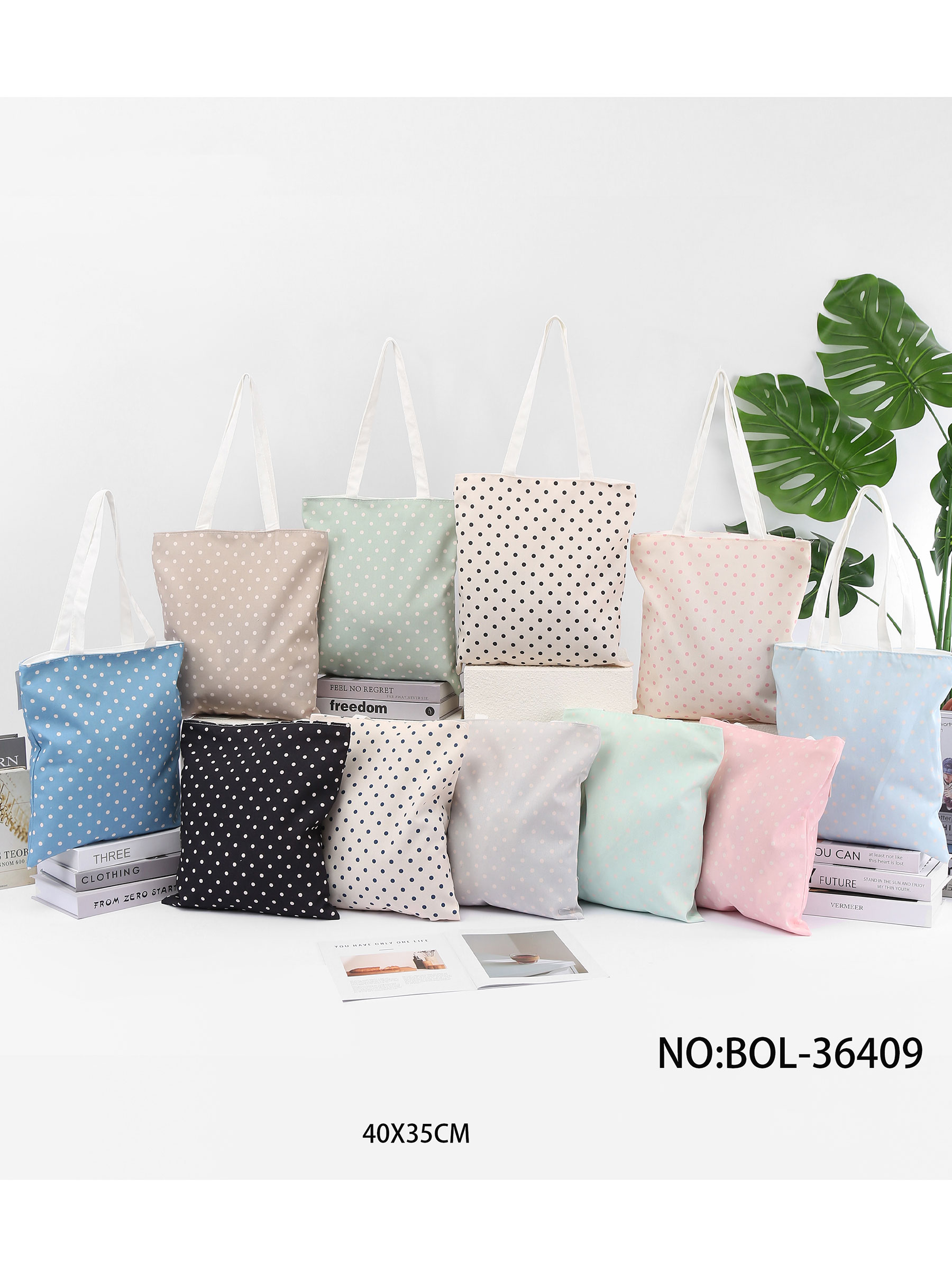 Bolsa de lona com estampa de bolinhas em tons pastel