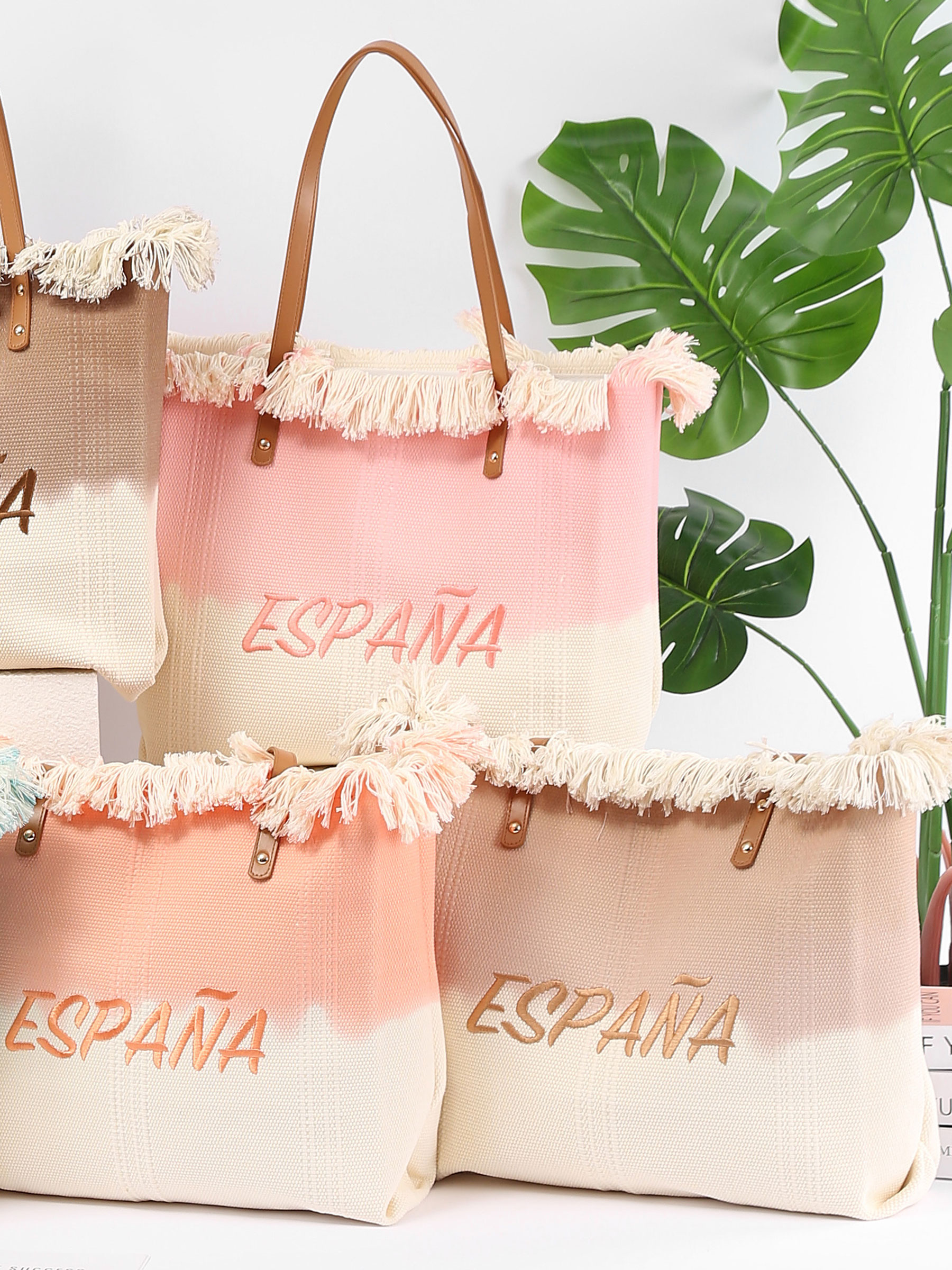 Sacola de compras degradê da Espanha com franjas.
