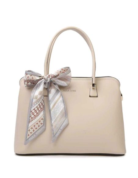 Bolsa elegante com laço e compartimentos.