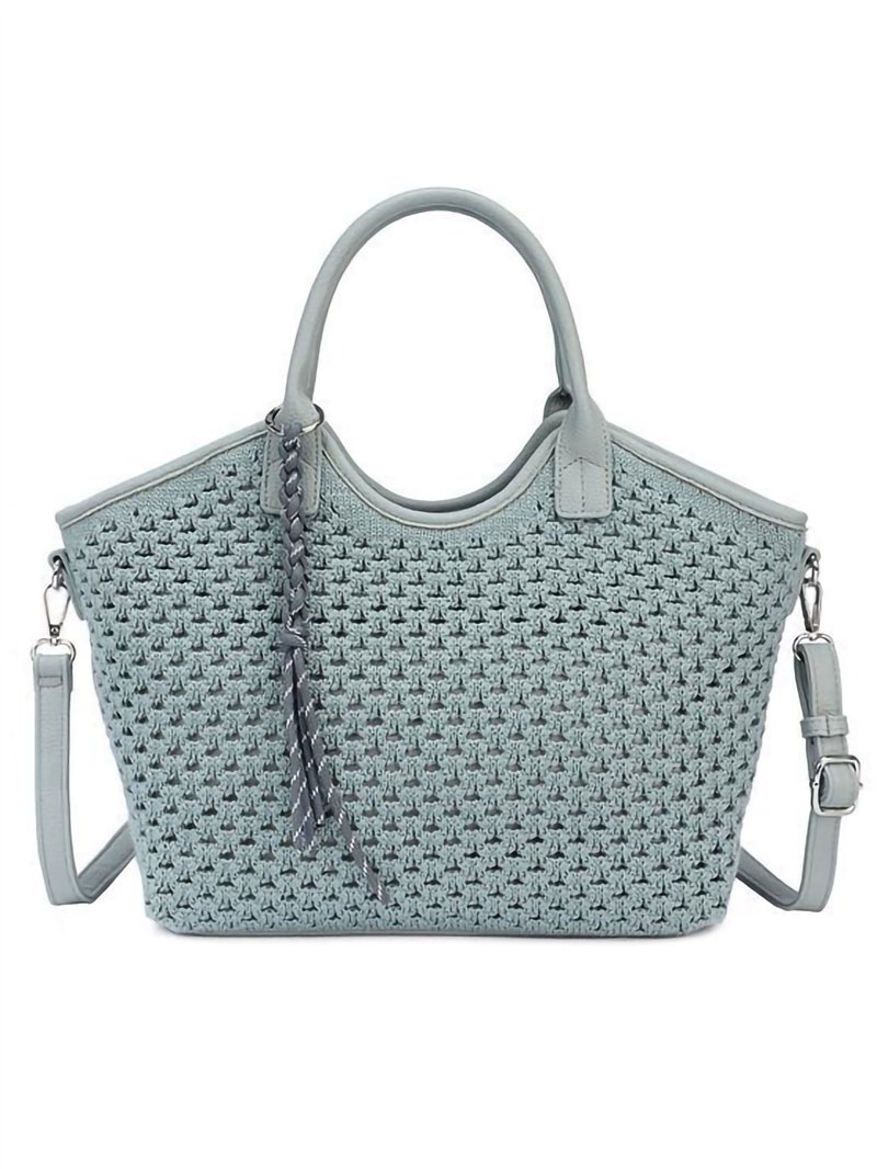 Sacola de compras em crochê vazado com alça.