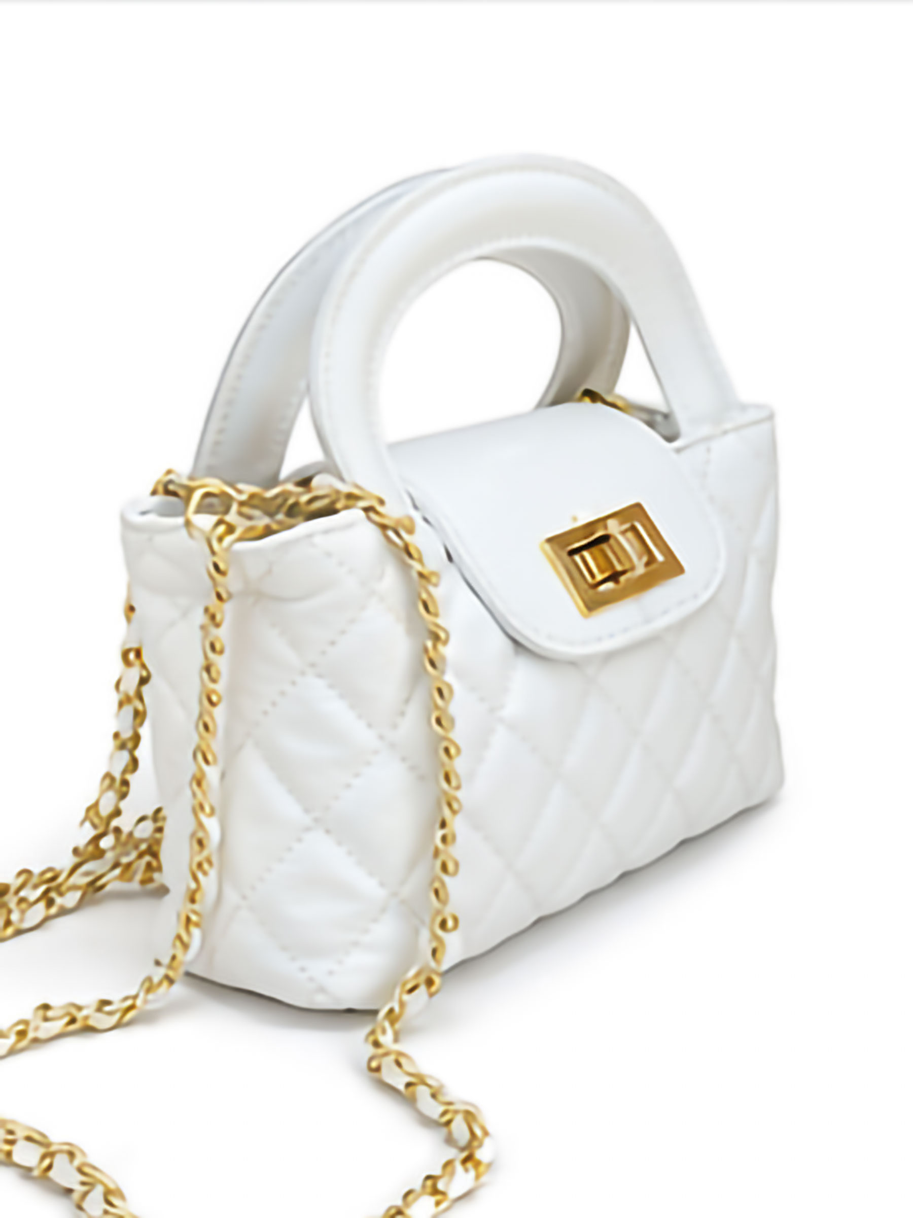 Bolsa de couro acolchoado com corrente.