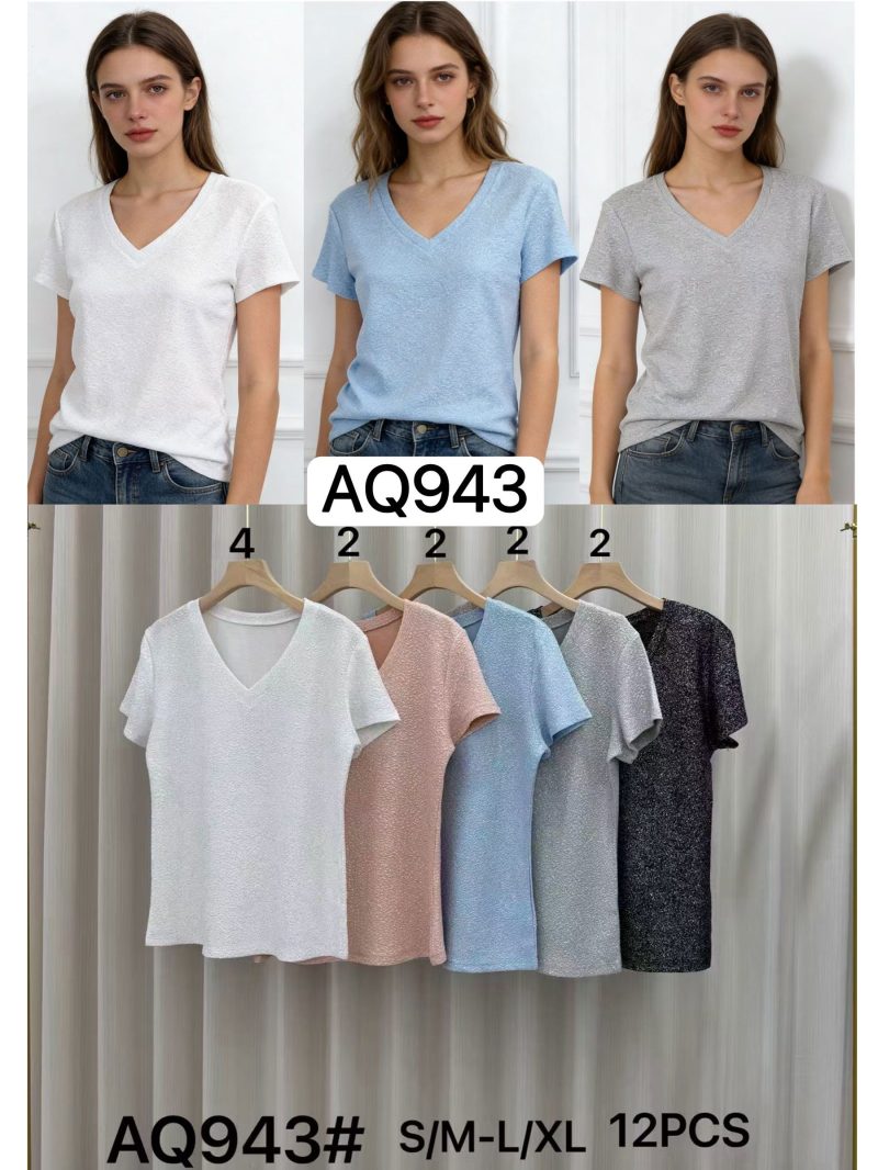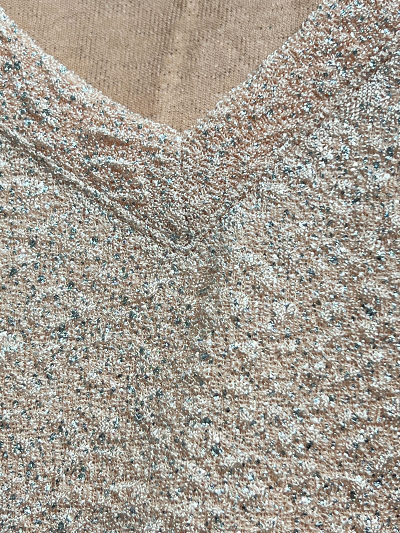 Camiseta com decote em V e glitter.
