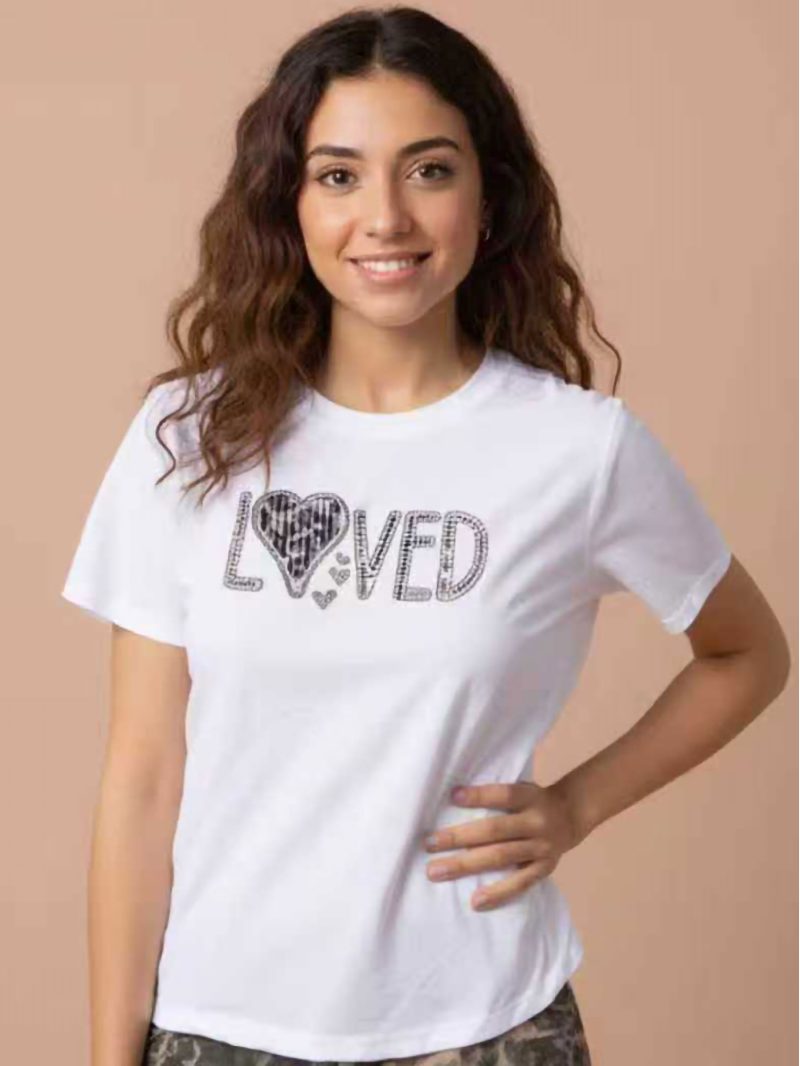 Camiseta linda com strass e estampa de leopardo.