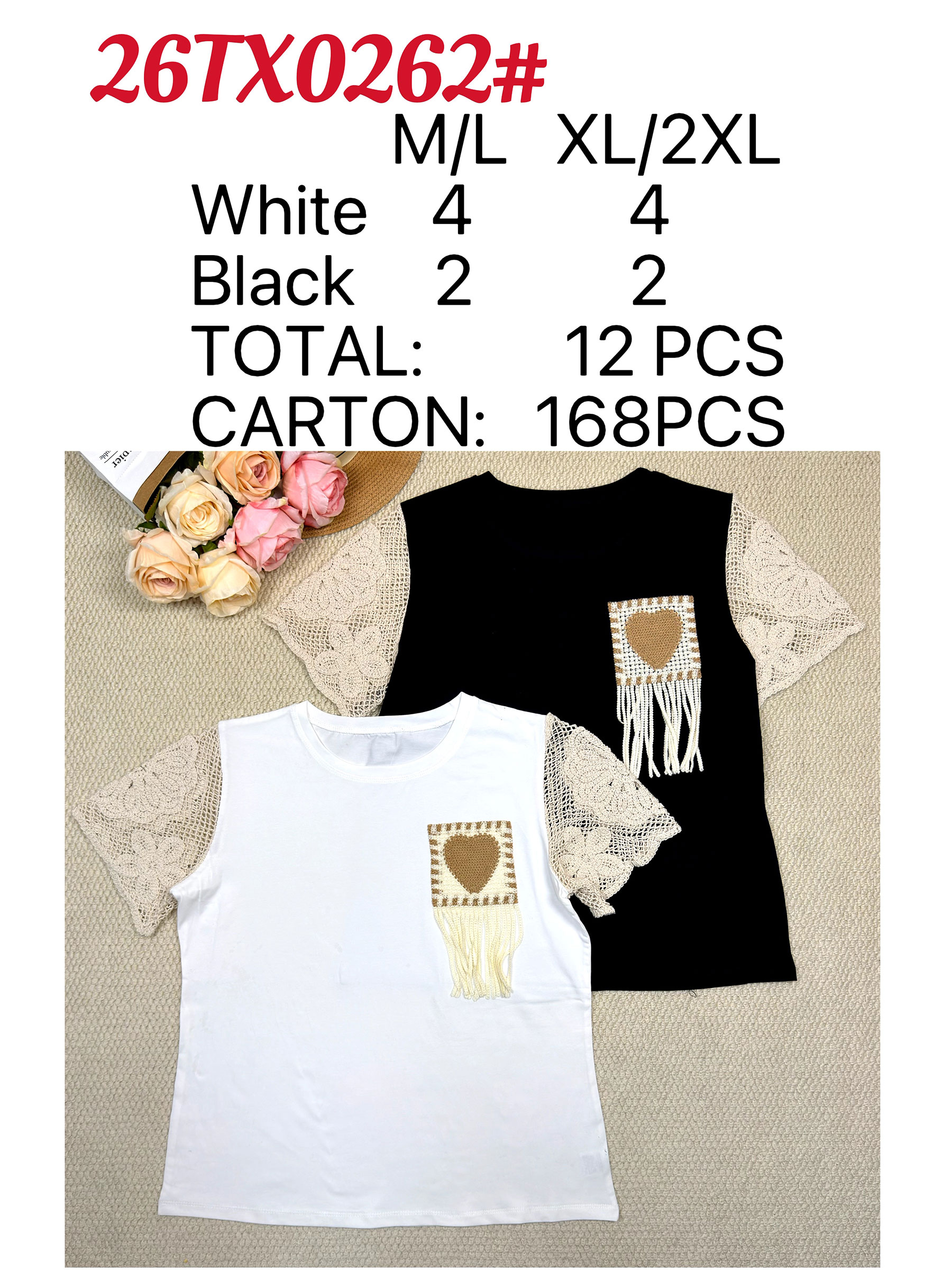 Camiseta com bolsos, franjas e mangas de crochê.