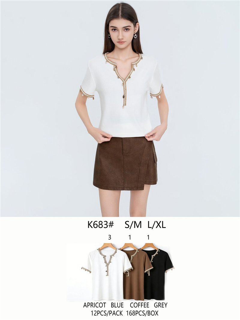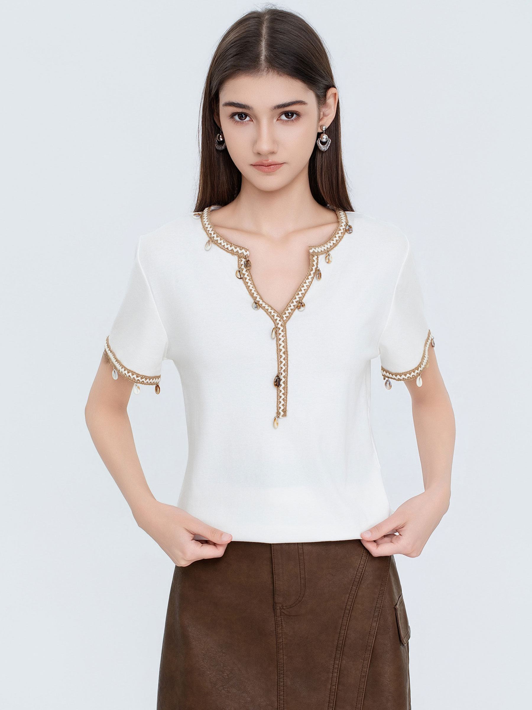 Camiseta com detalhe de concha na barra