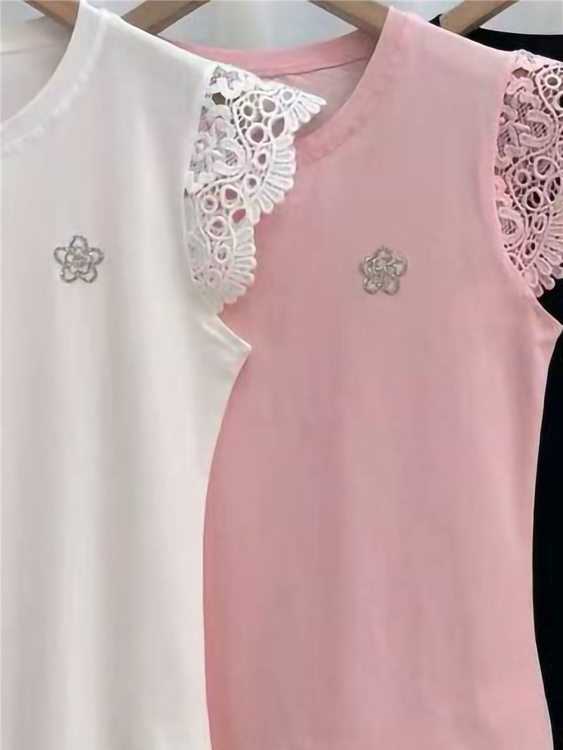 Camiseta de renda com flor de strass