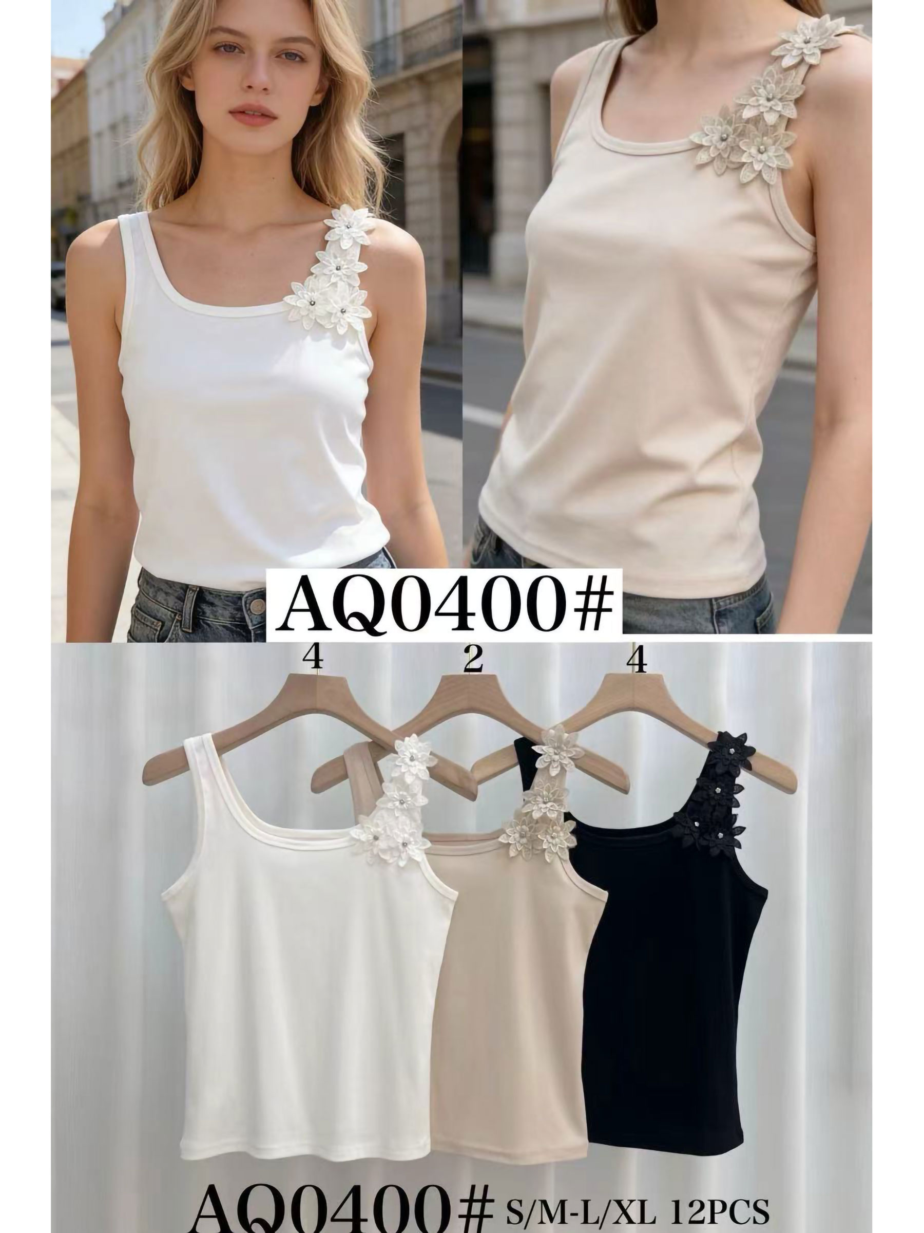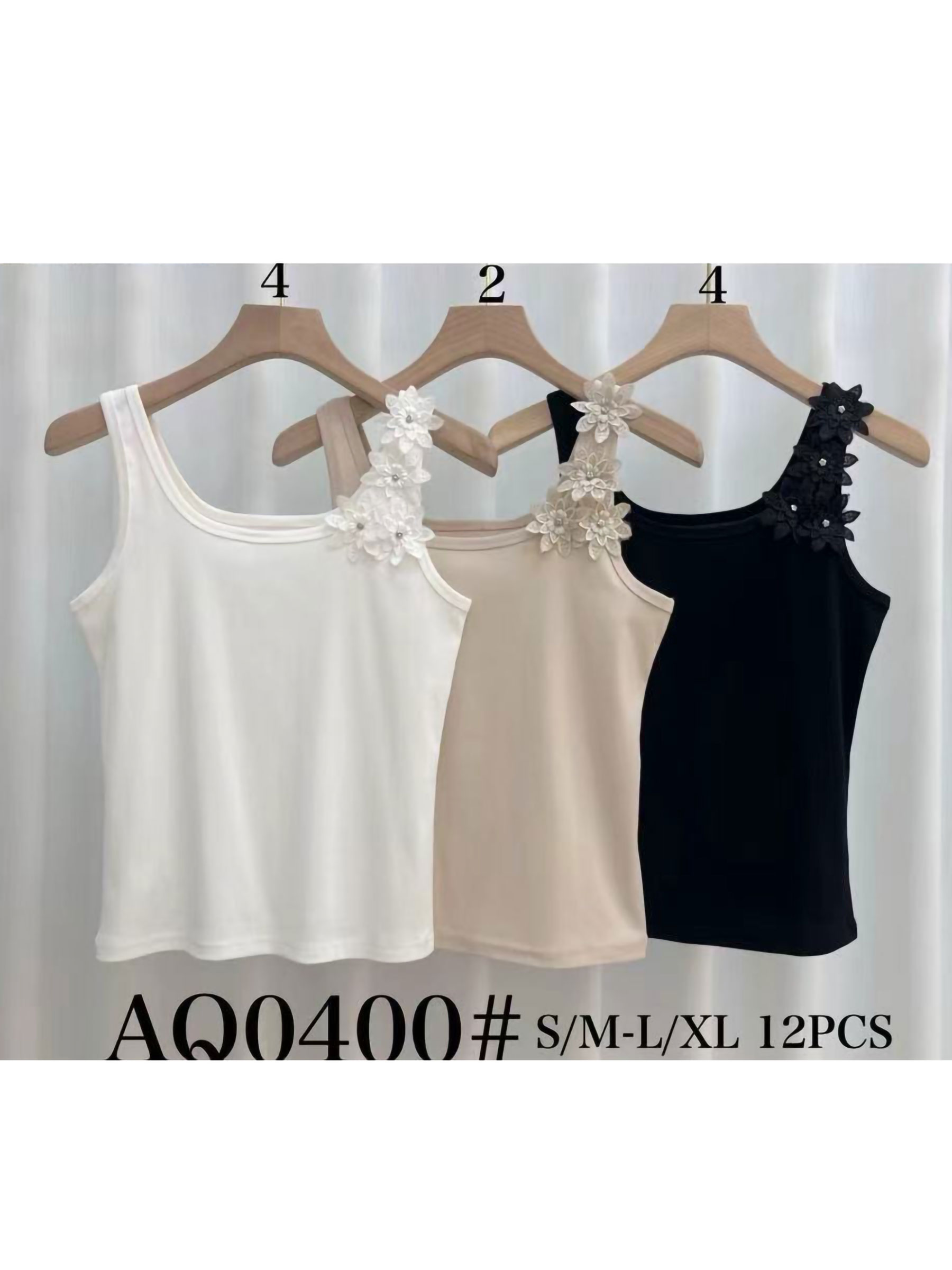 Blusa sem mangas. Detalhe floral bordado no ombro. Decote redondo. Tecido elástico.