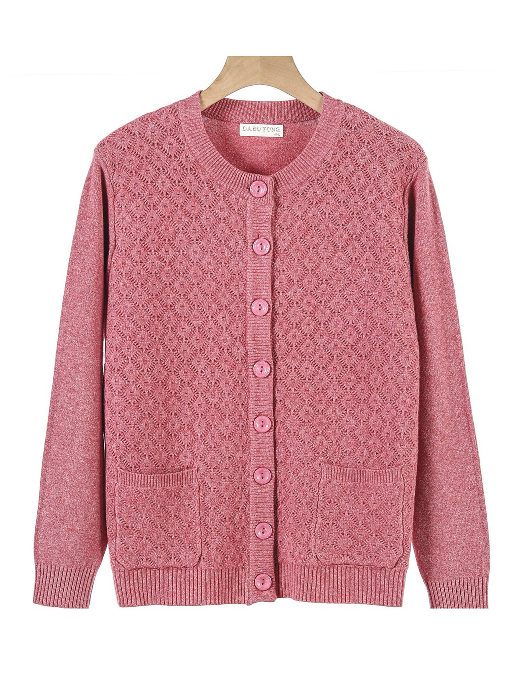 Jaqueta de malha estruturada quente. Tamanho grande. Gola redonda. Bolsos frontais de aba. Manga comprida. Fecho com botões.