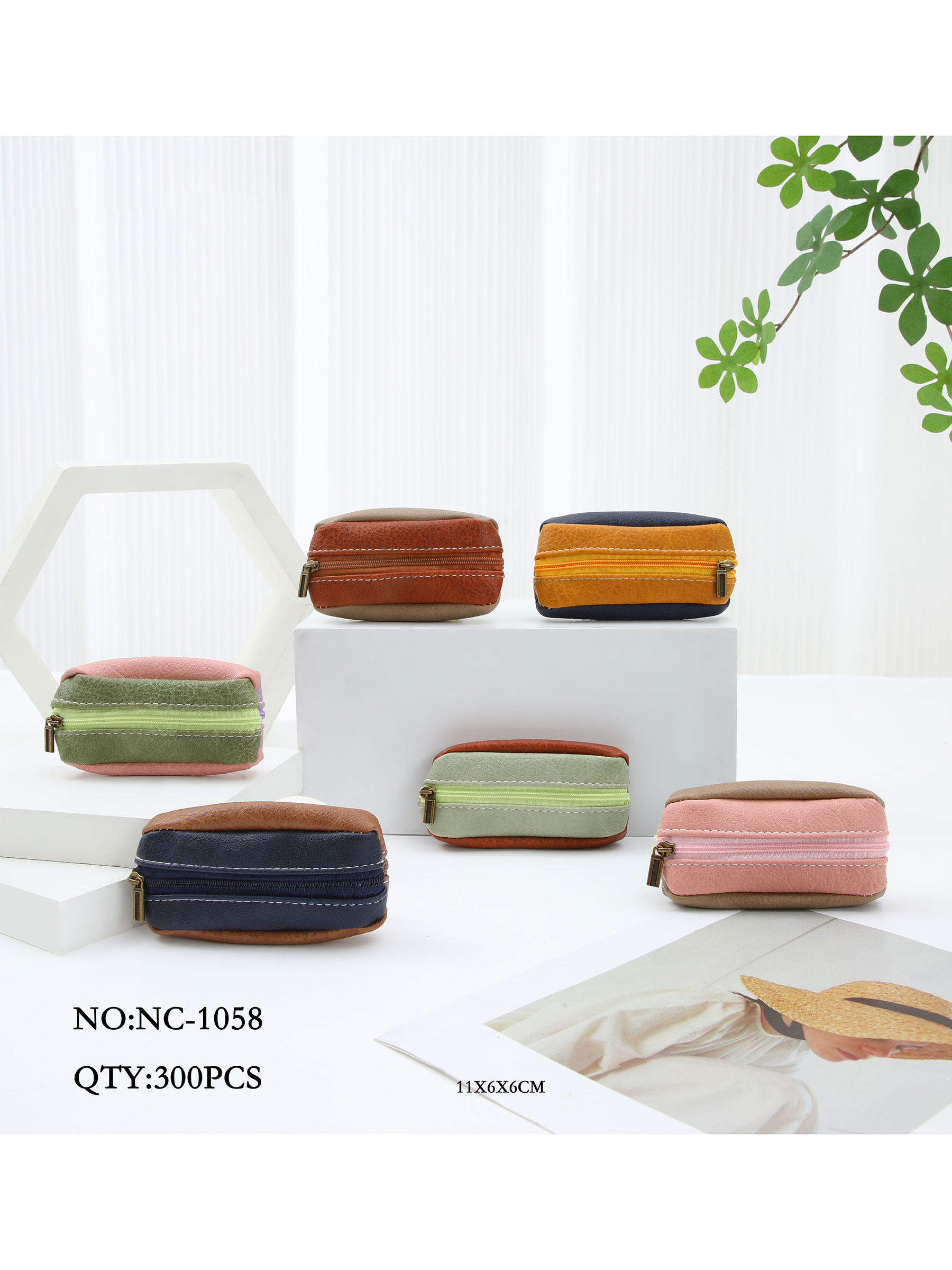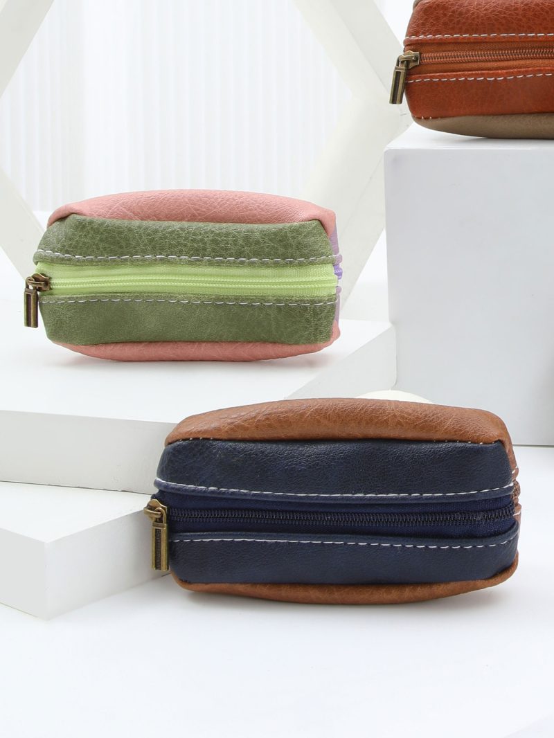 Carteira bicolor em couro sintético com fecho de correr.