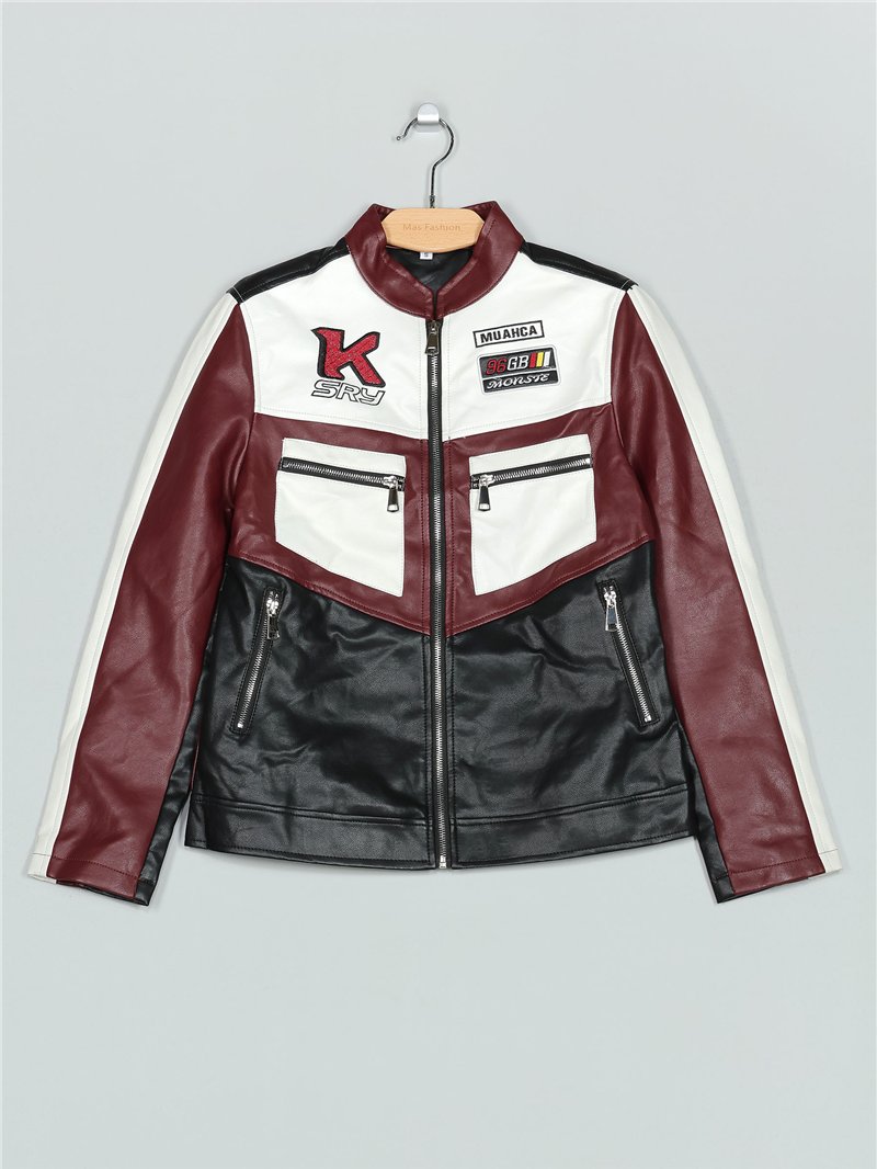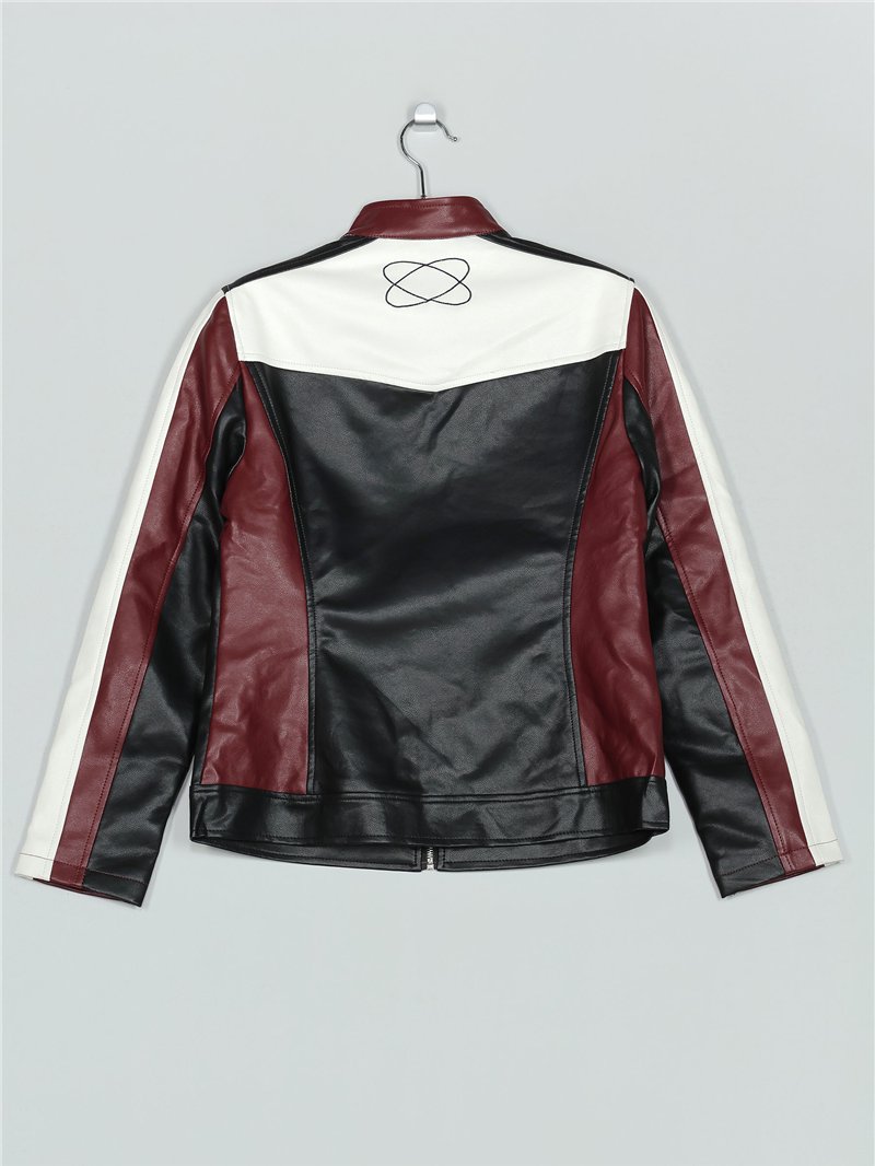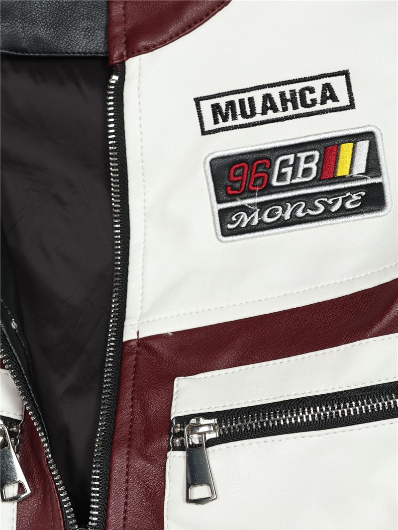 Detalhes da jaqueta de corrida efeito pele MF-MF6701-2-BLACK-WINE-WHITE