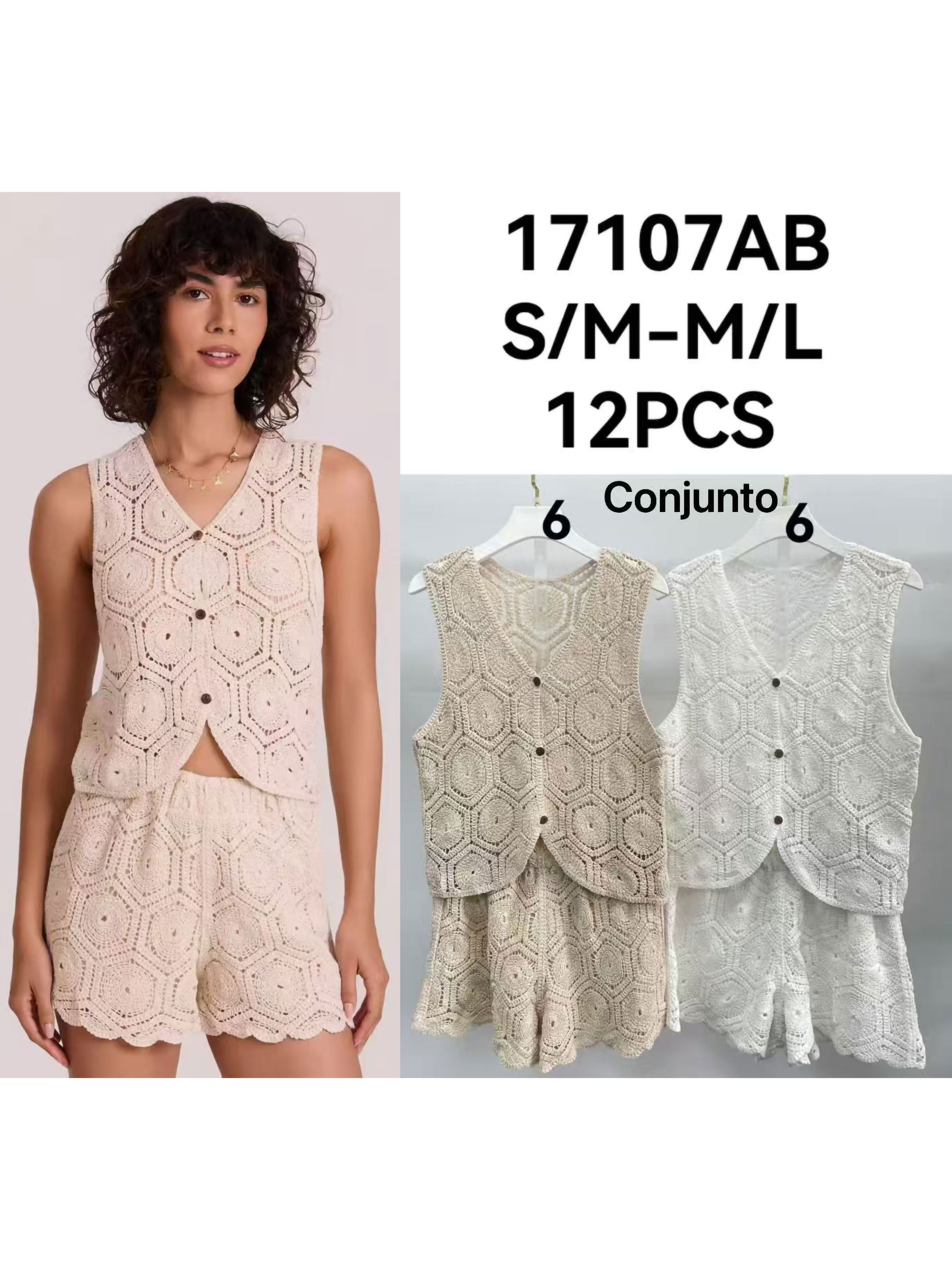 Conjunto de colete e shorts de crochê geométrico