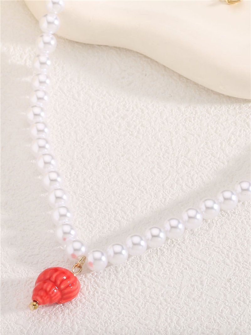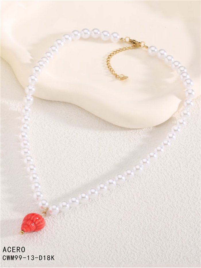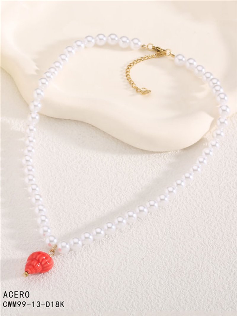 Colar de pérolas com pingente de concha - Aço inoxidável