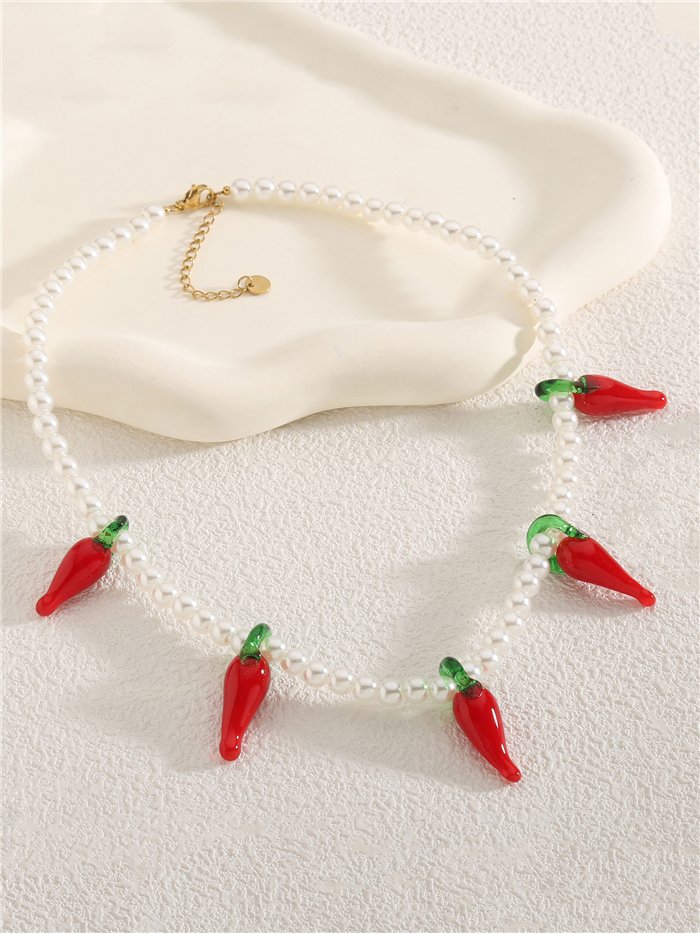 Detalhes do colar de pérolas com pingente de cenouras - aço inoxidável BS-LXZ8223