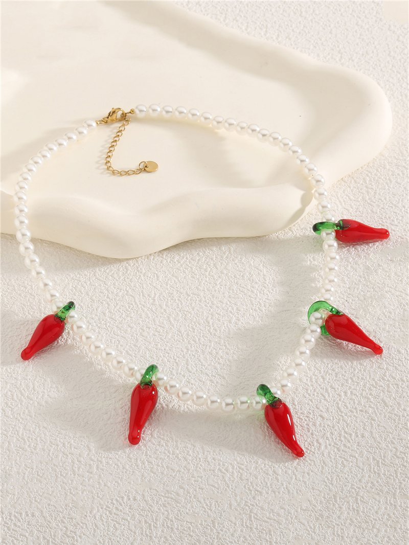 Colar de pérolas com pingente de cenouras - Aço inoxidável.