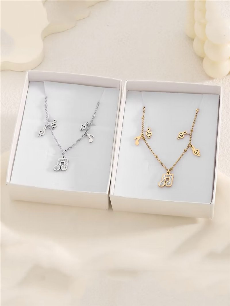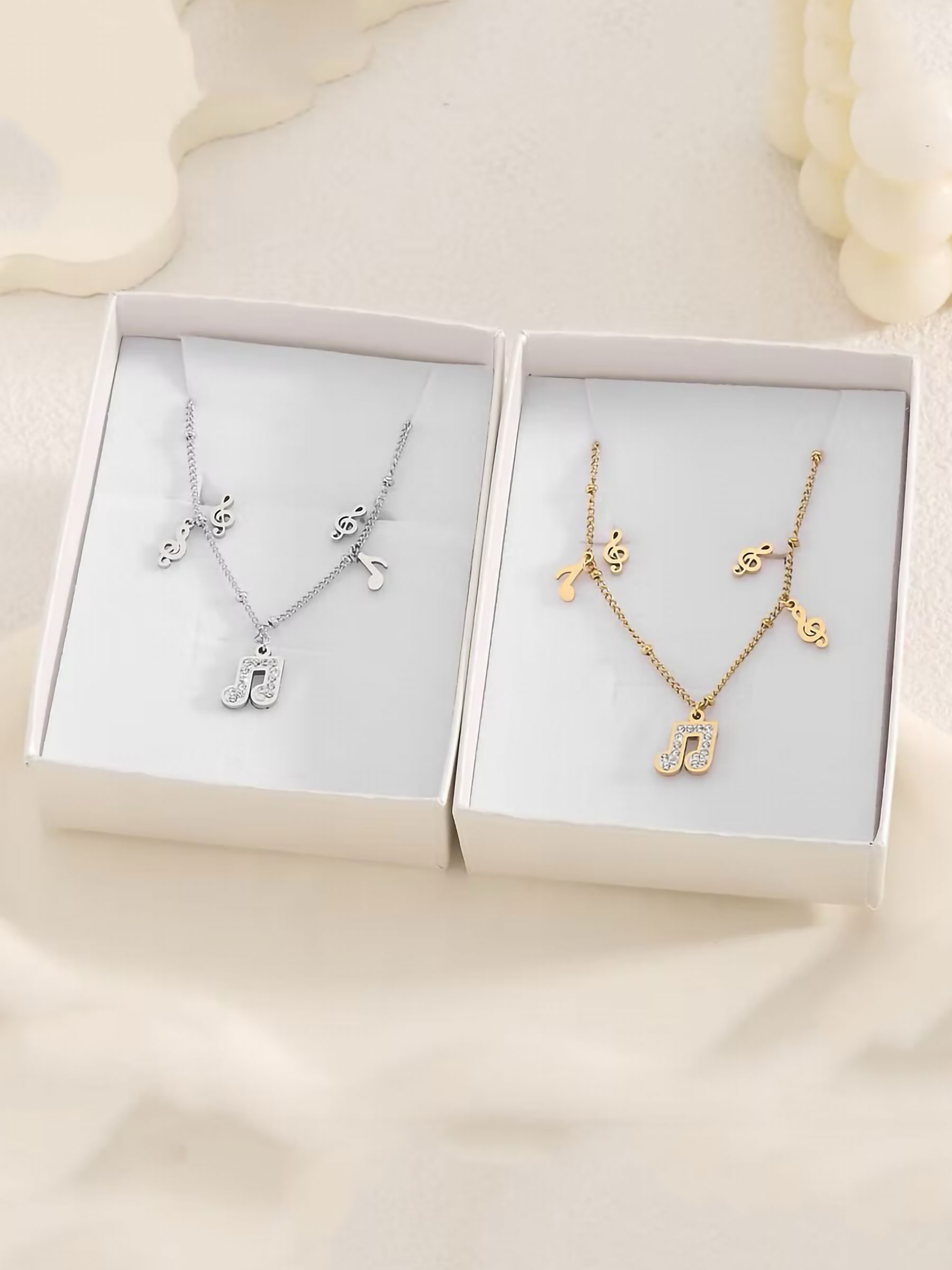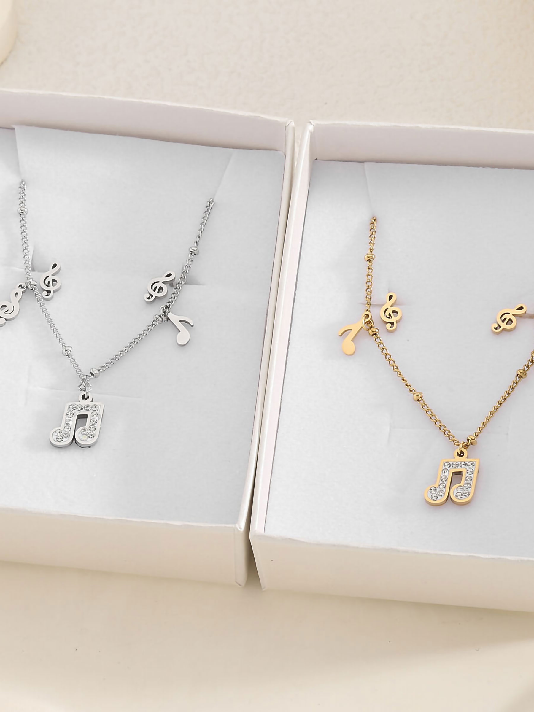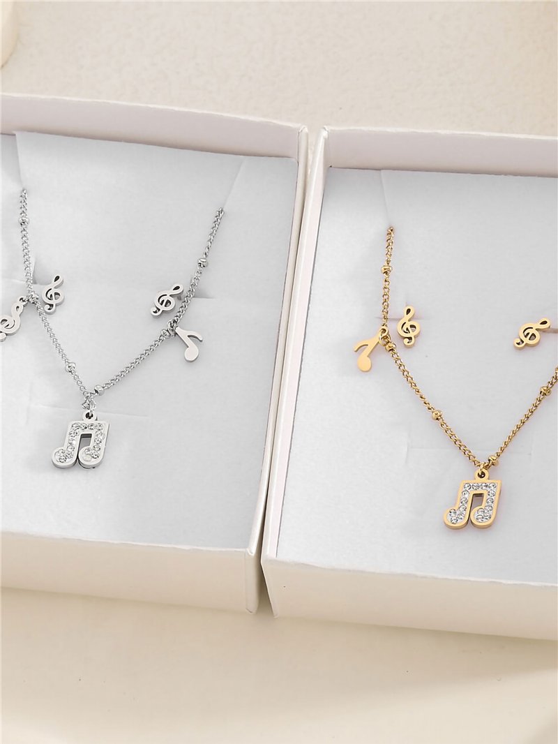 Detalhes do conjunto de colar corrente de nota musical com zircônias + brincos - aço inoxidável BS-DH61898-DH61899