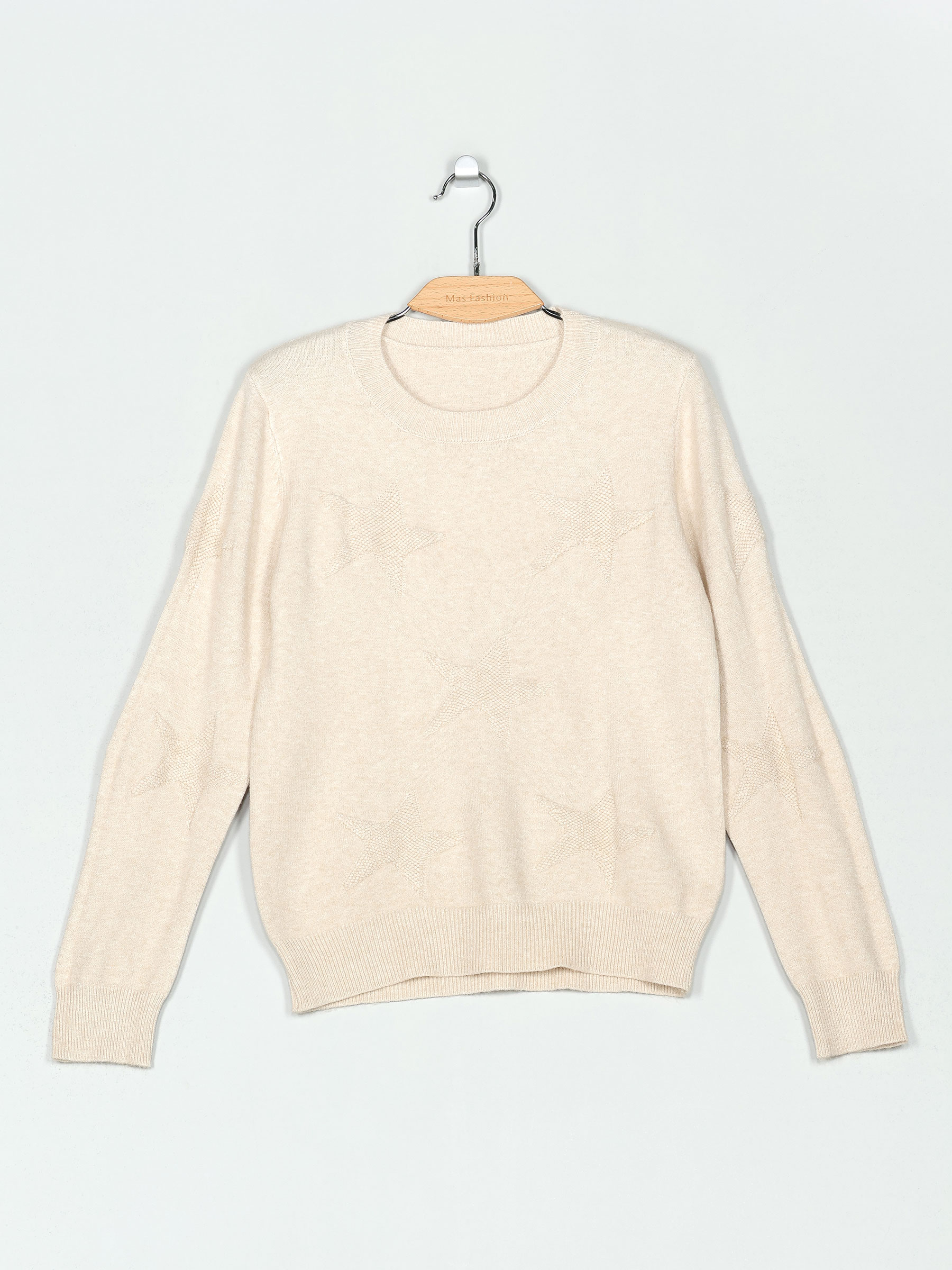 Detalhes do suéter macio com estrelas em relevo MF-60255