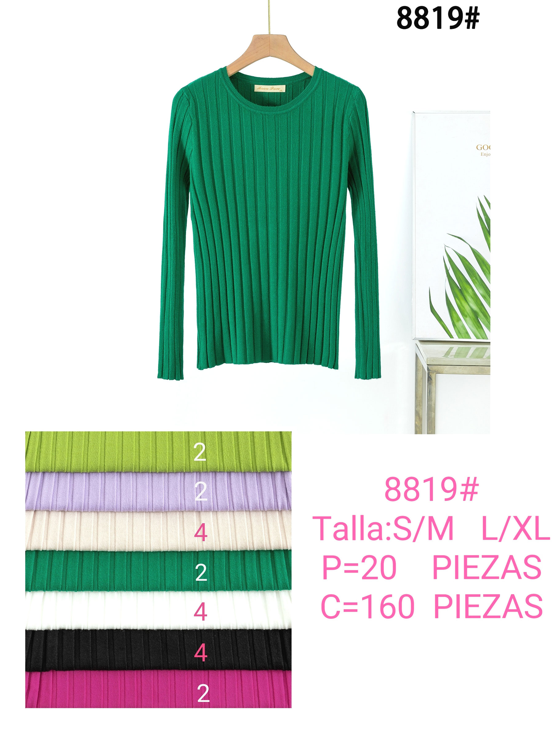 Detalhes da camisola de gola redonda em malha canelada FA-8819