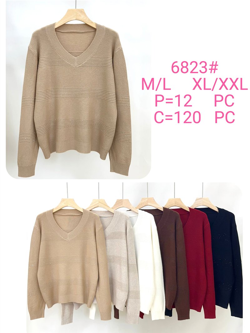 Detalhes de camisola listrada com lantejoulas decote em V FA-6823