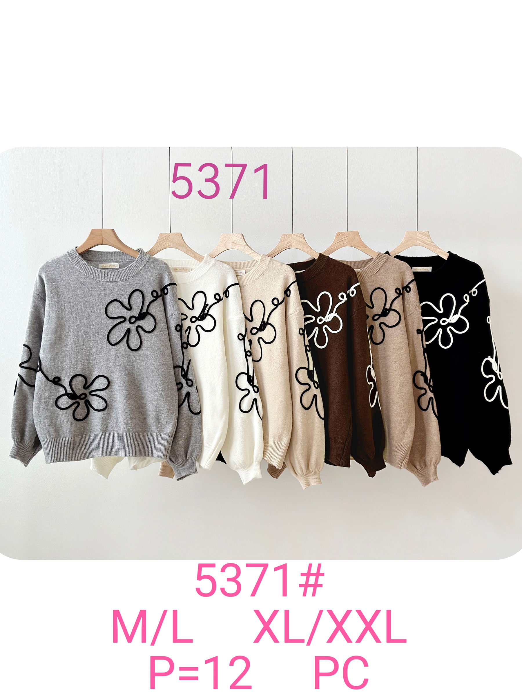 Detalhes do suéter bordado em relevo floral FA-5371