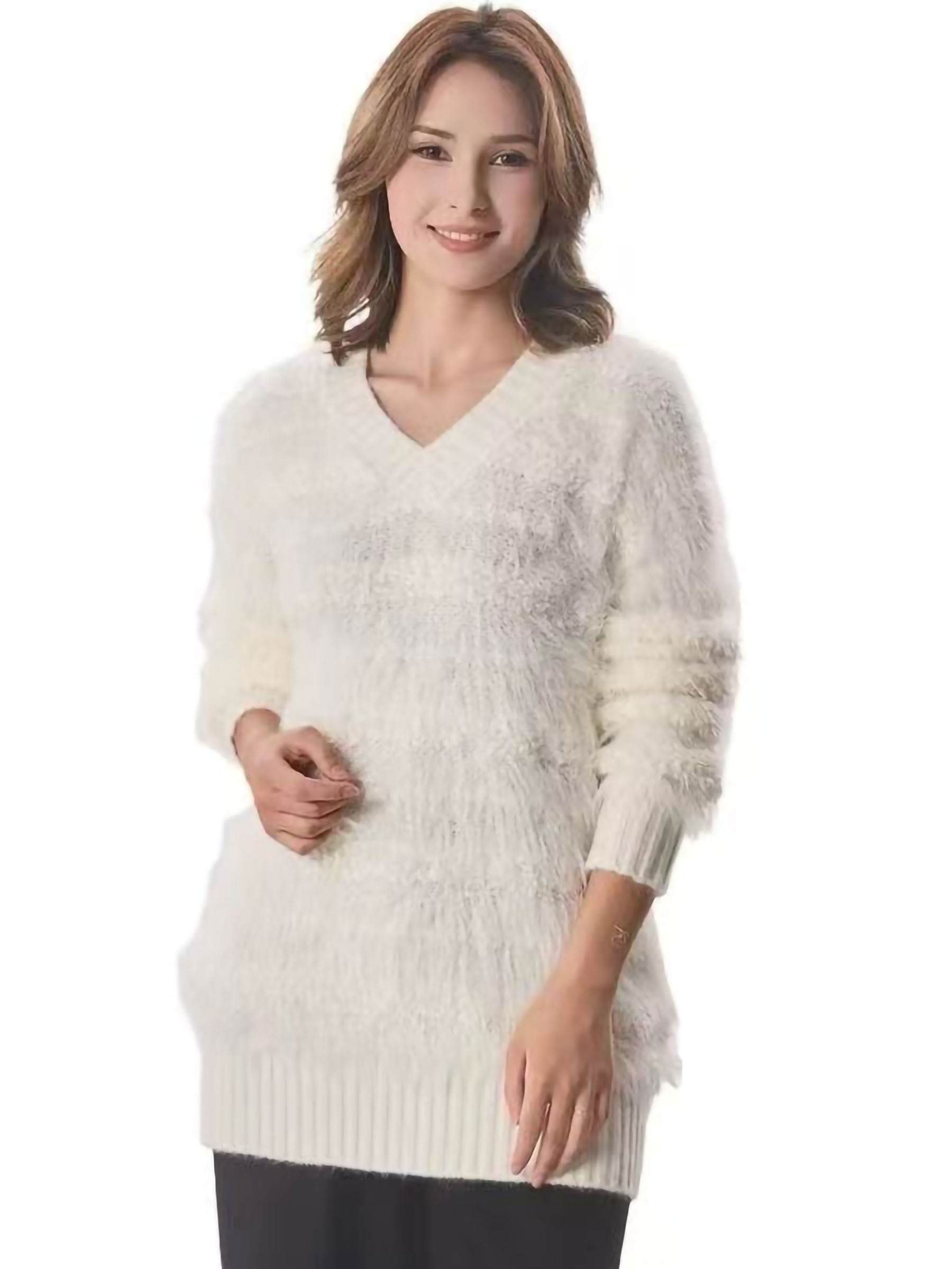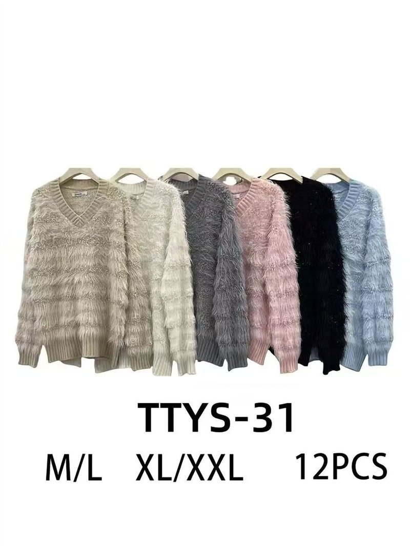 Detalles de jersey pelo suave escote pico LS-TTYS31