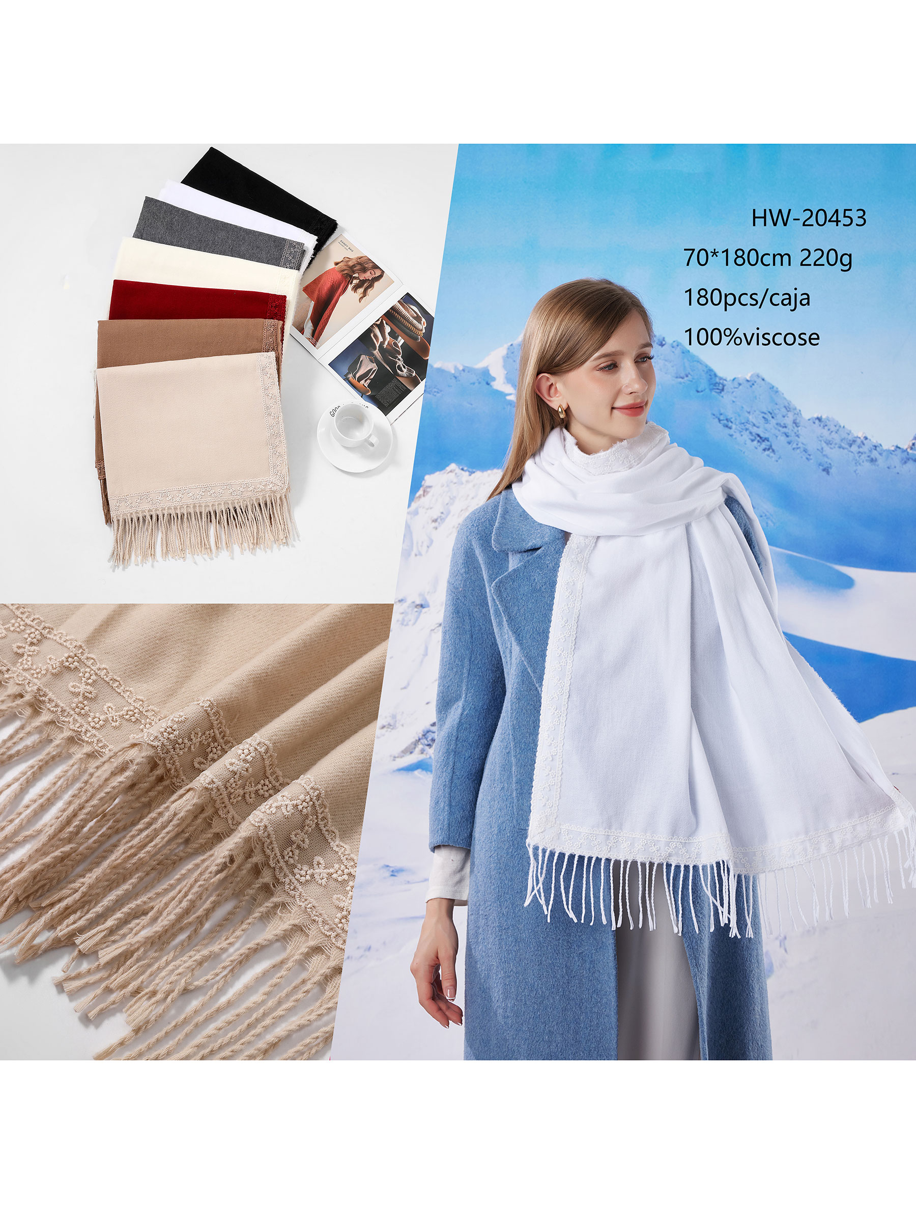 Detalhes do cachecol de franjas de renda HY-HW-20453
