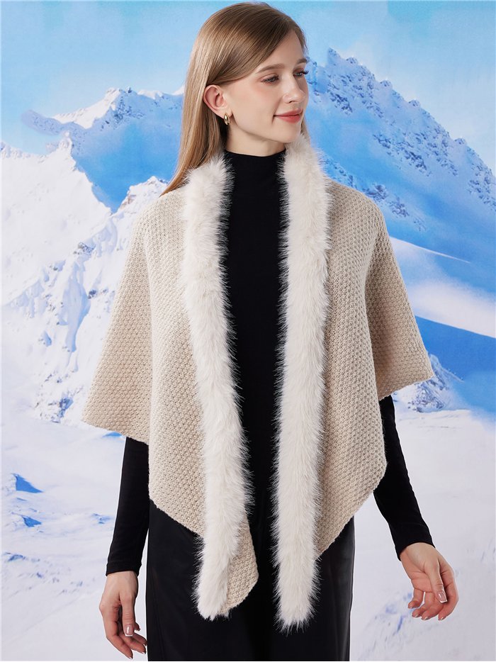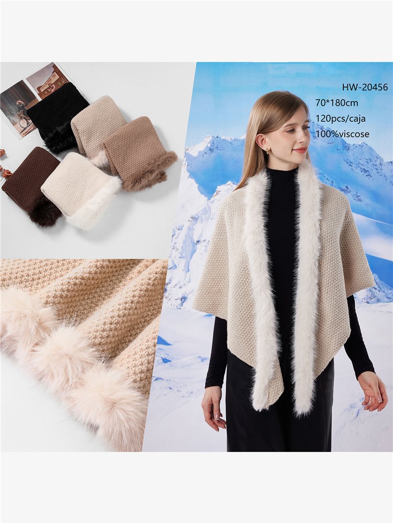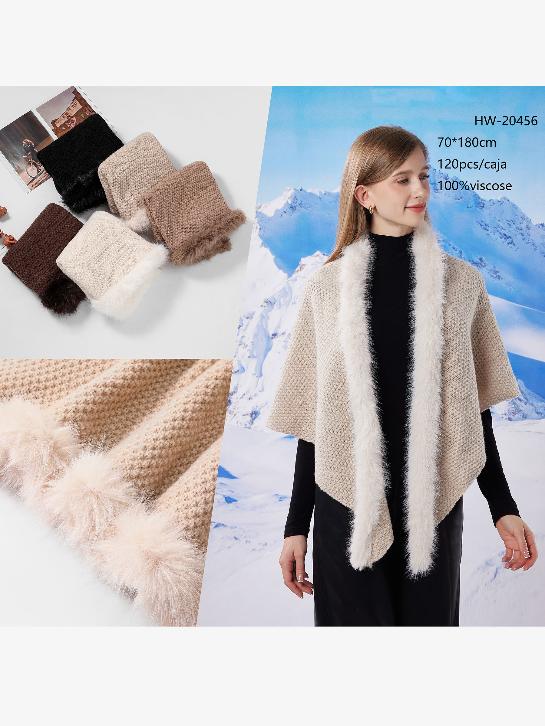 Detalhes do xale triangular de malha com pelo HY-HW-20456