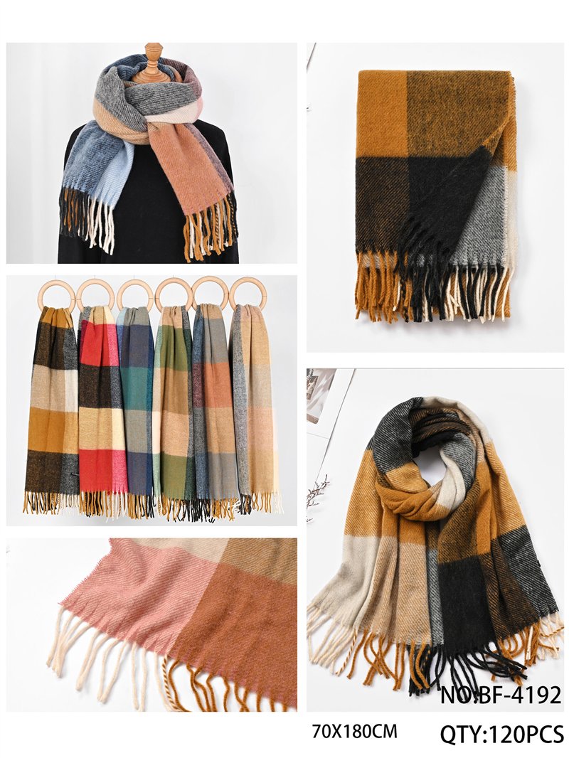 Detalhes do cachecol de xadrez com franjas BF-BF-4192