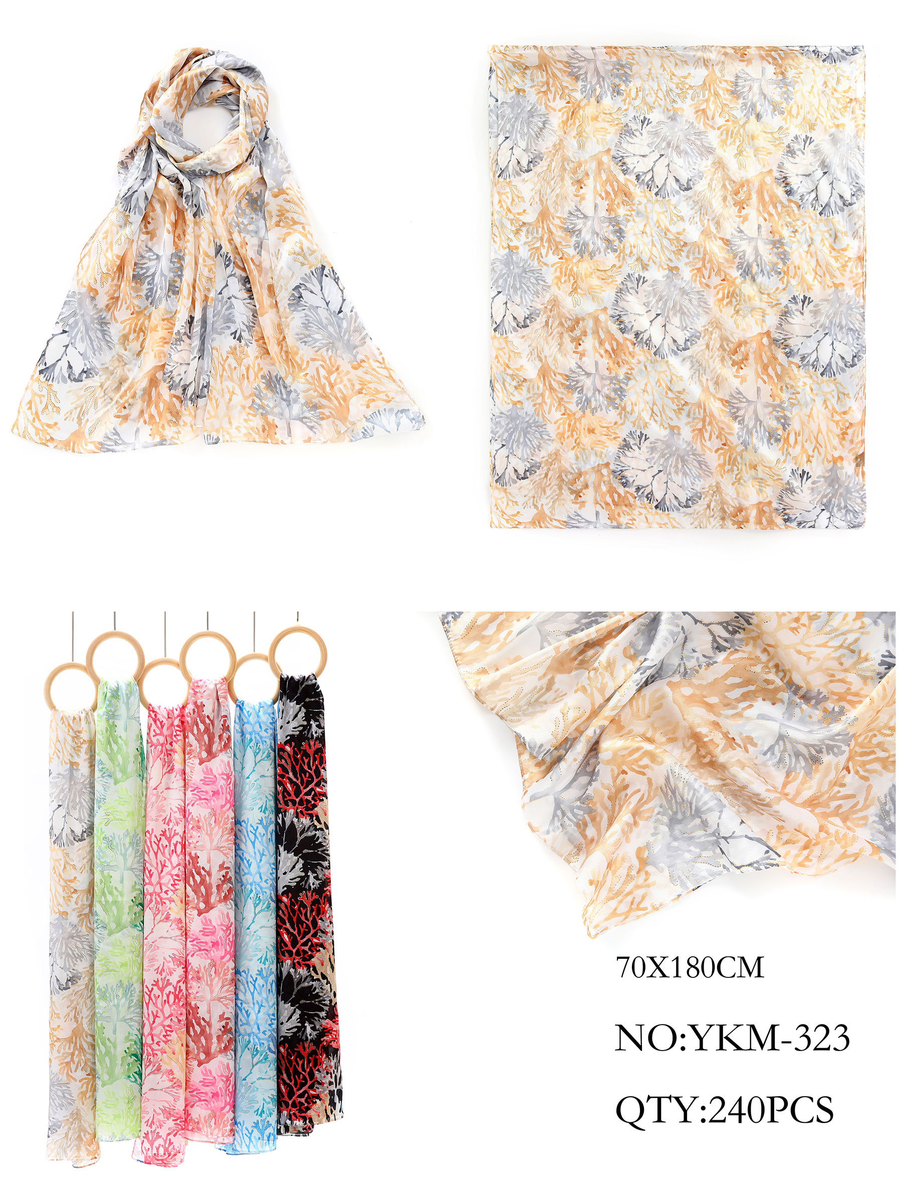 Lenço coral marinho com detalhes dourados