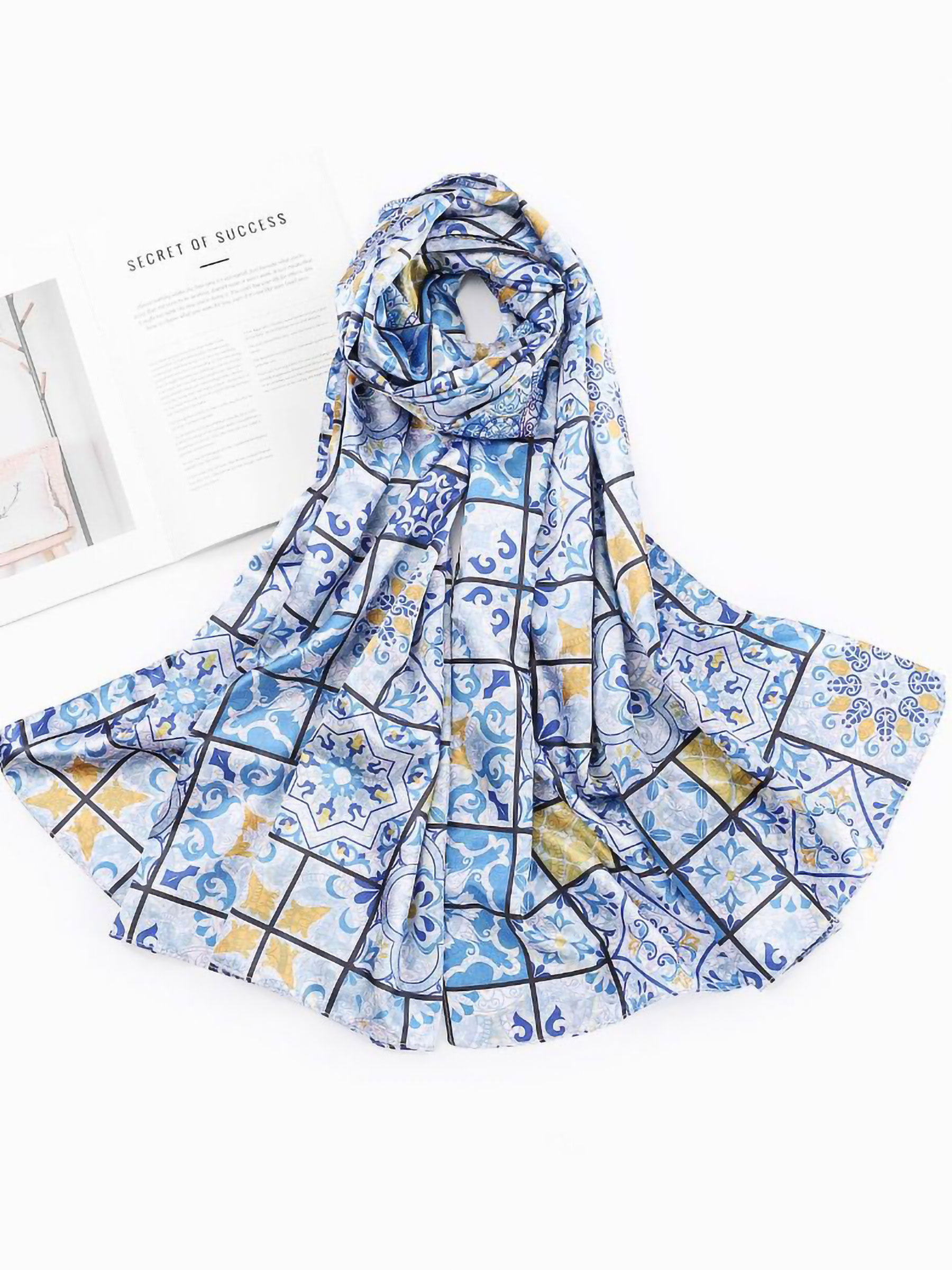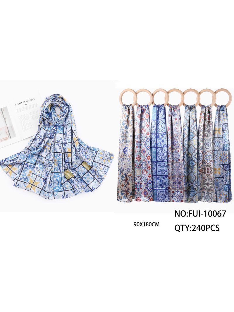 Lenço com estampa mosaico e efeito seda.