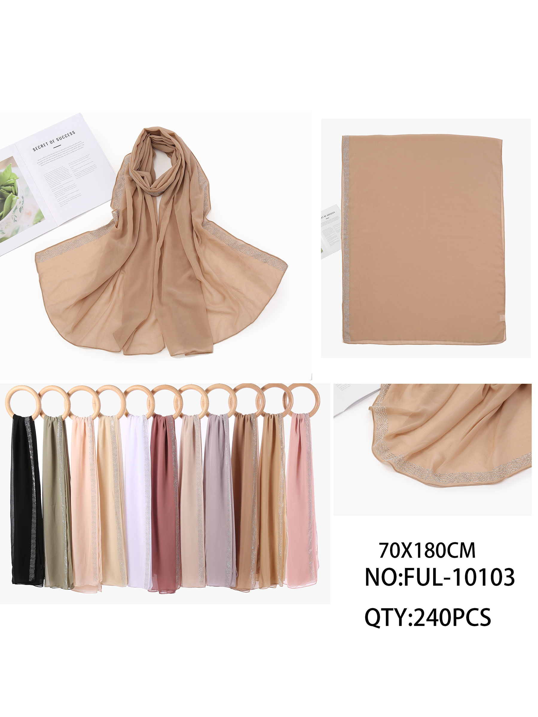 Lenço com efeito chiffon e detalhes em strass.
