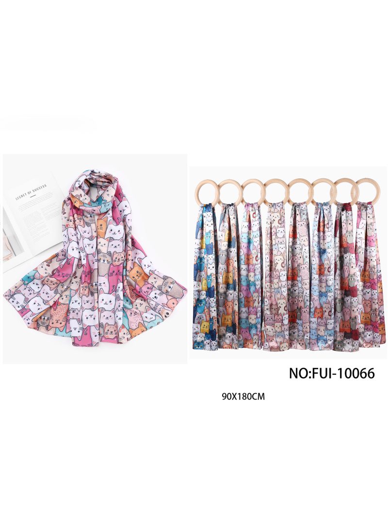 Lenço com estampa de gato e efeito seda