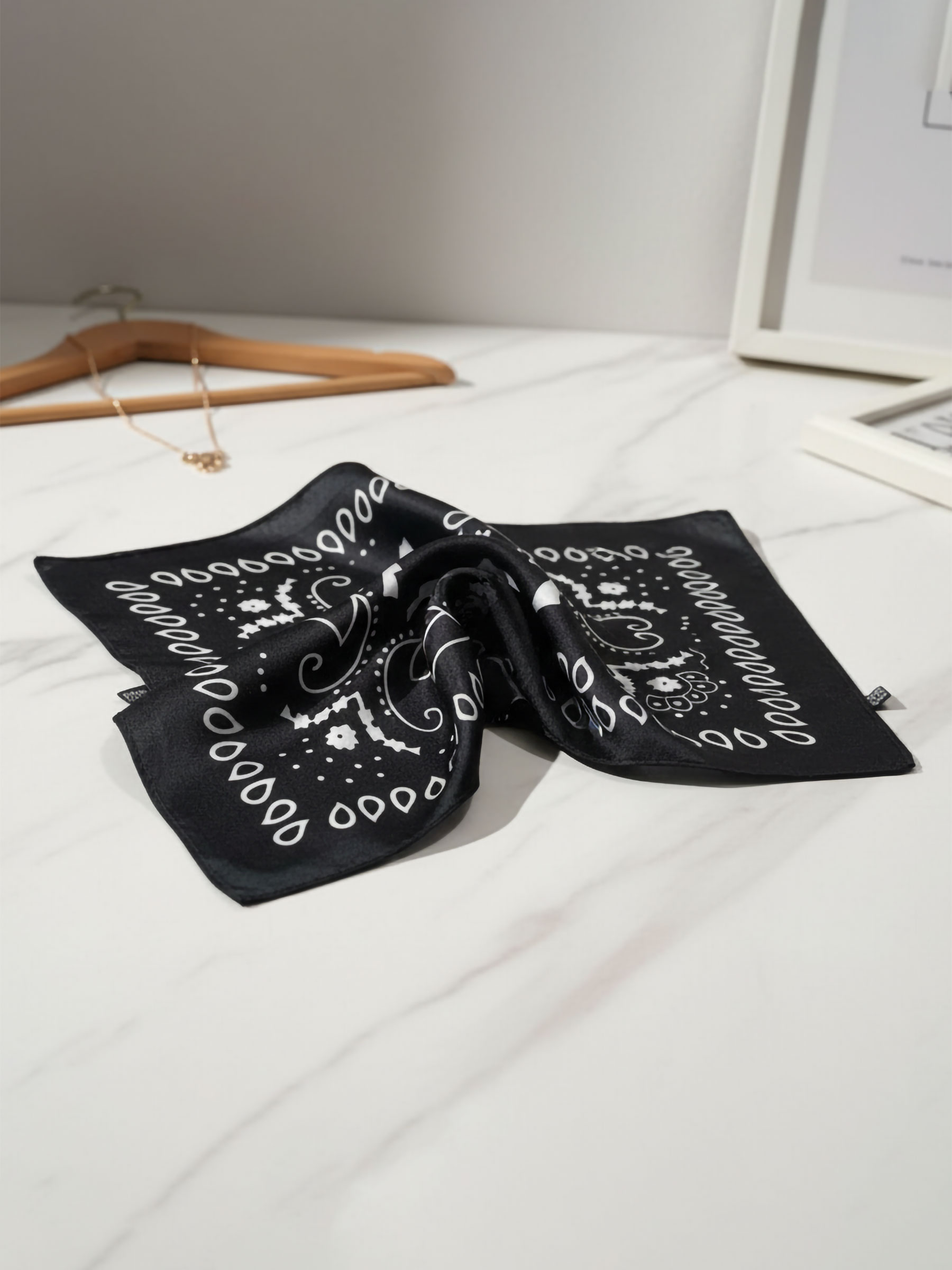 lenço bandana quadrado com estampa e efeito seda