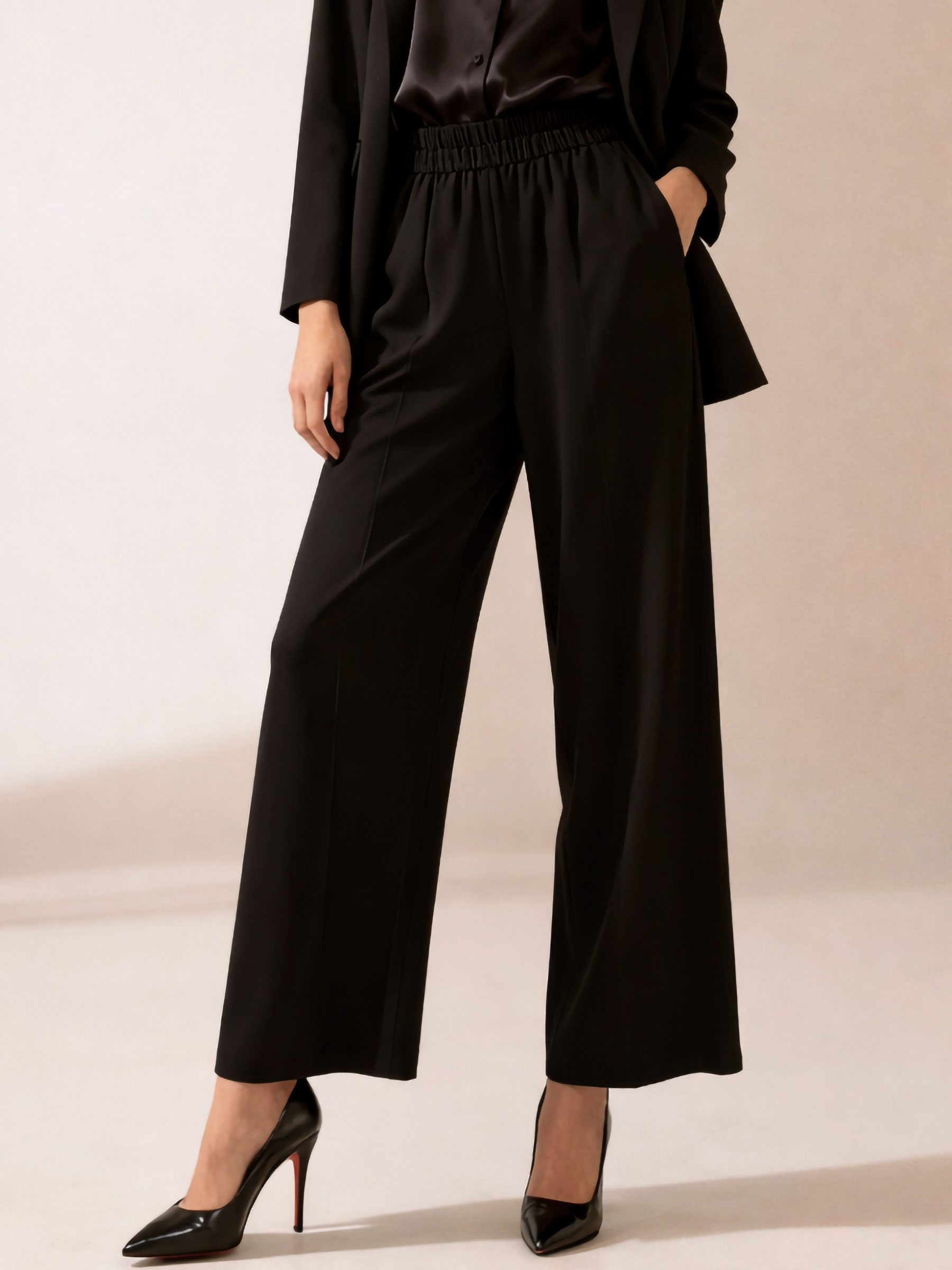 Mín. 6 Pantalones Calças com efeito linho e borda bordada. MF-MF36470 Calças palazzo. Tecido com efeito linho. Detalhe bordado na cintura. Cintura alta. Pernas largas.Coleção: Primavera/Verão 2026 Ver preço