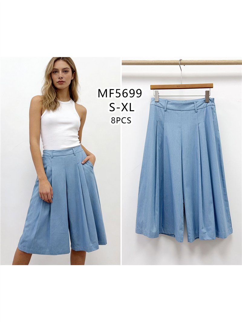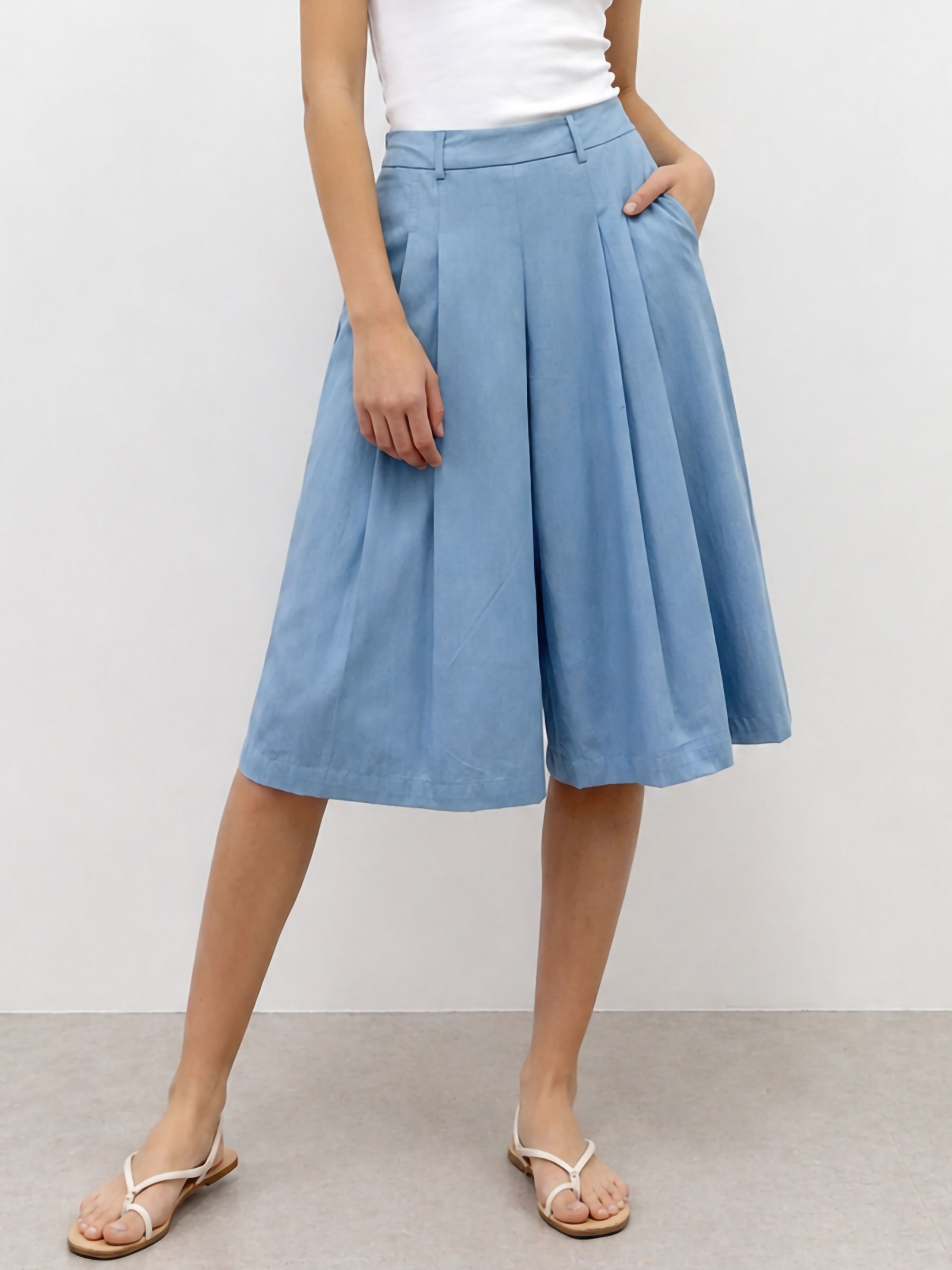 Calças culote de pernas largas com pregas