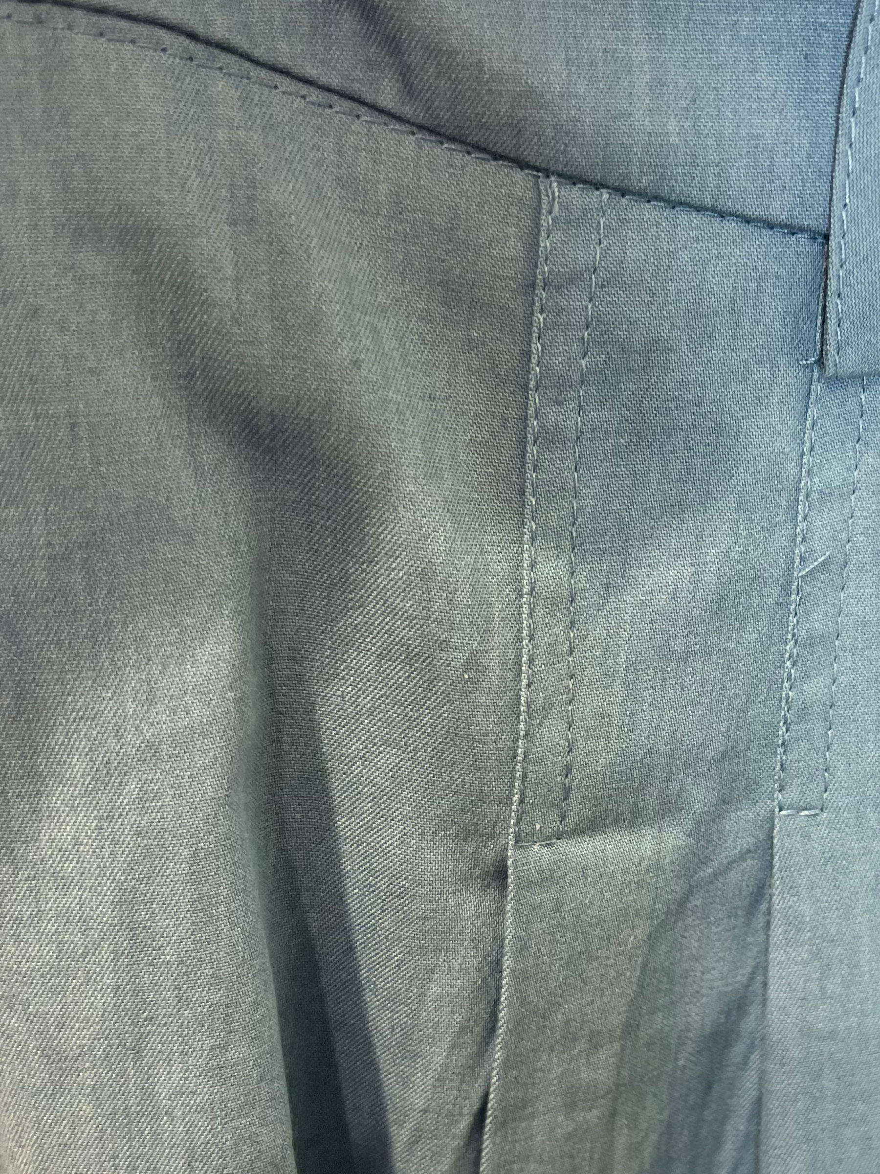 Calça pantalona. Pregas frontais. Passadores de cinto na cintura. Pernas largas.