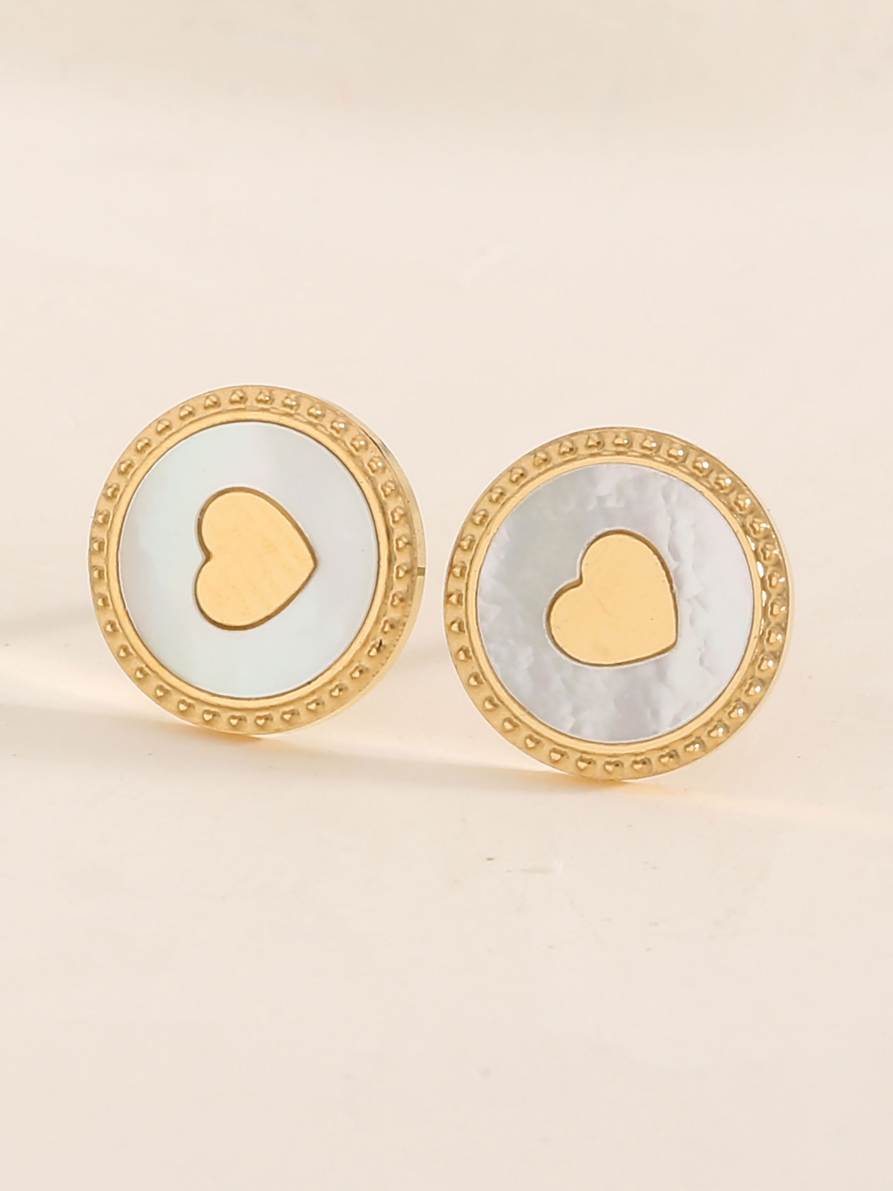Brincos redondos coração de Madrepérola - Aço inoxidável