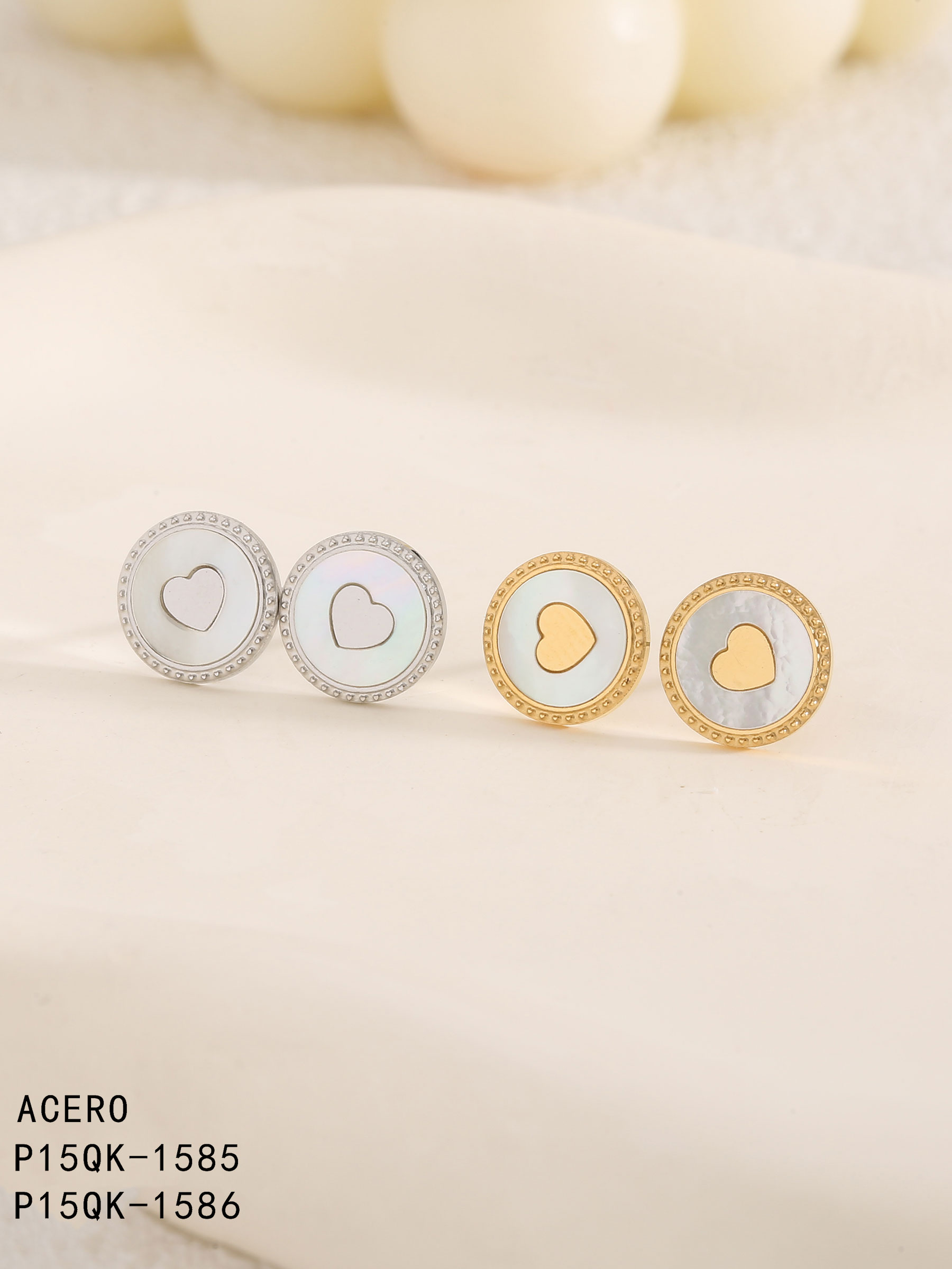 Detalhes dos brincos redondos coração de madre pérola - aço inoxidável BS-QK1585-QK1586