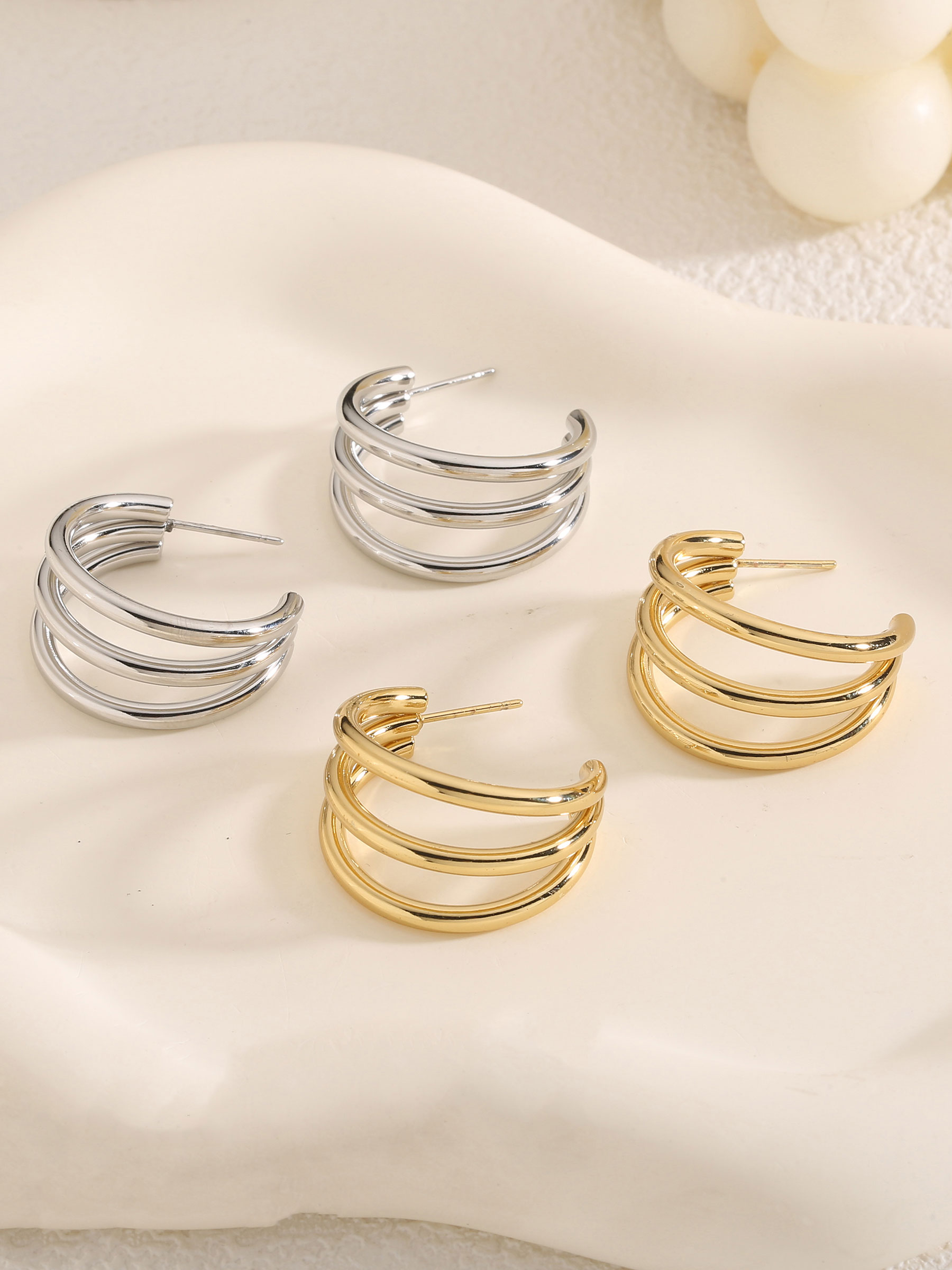 Detalhes dos brincos argolas efeito triplo - aço inoxidável BS-YHS10465-YHS10466