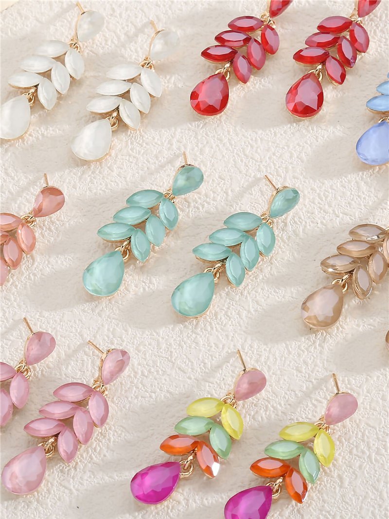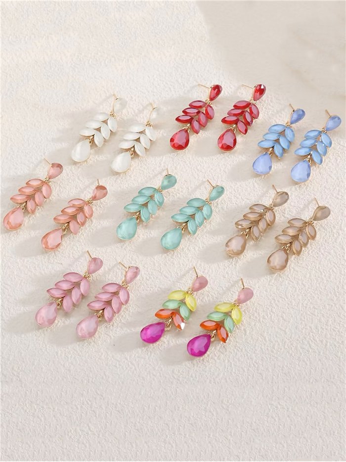 Detalhes de brincos longos festa folhas com pedraria - aço inoxidável BS-PXY001