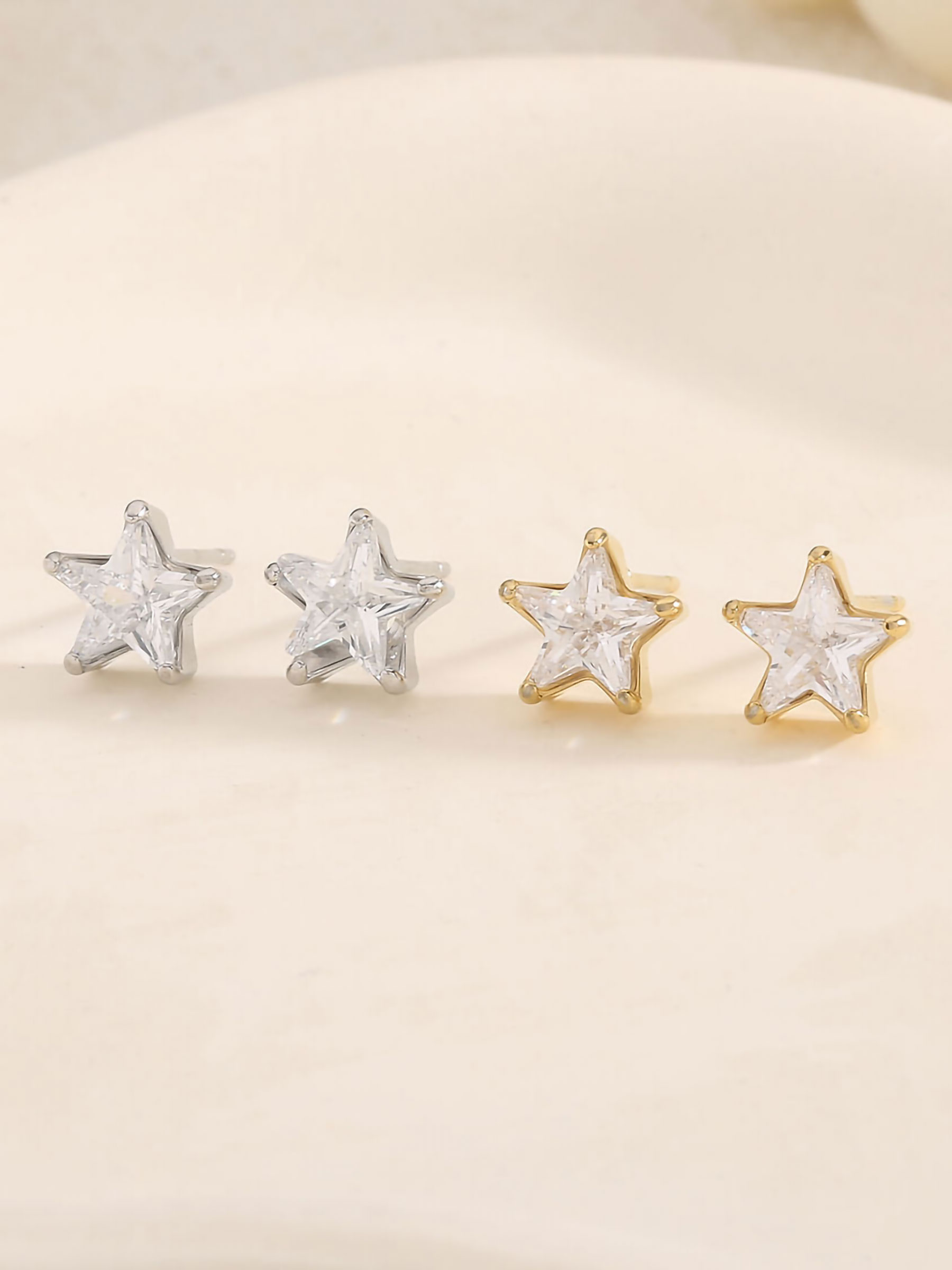 Detalhes de brincos estrela com zircônias - aço inoxidável BS-TG287-TG288