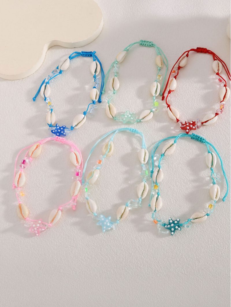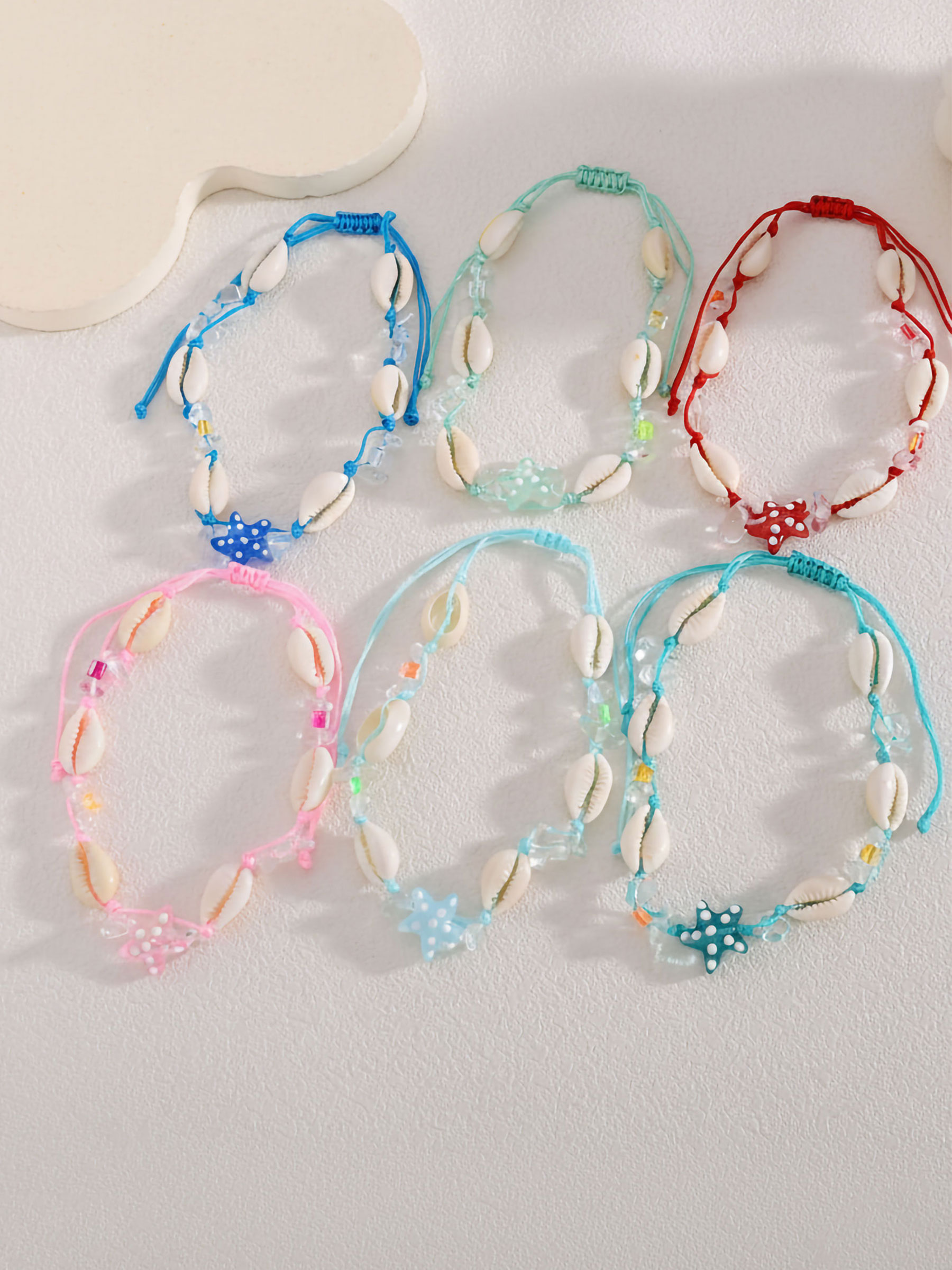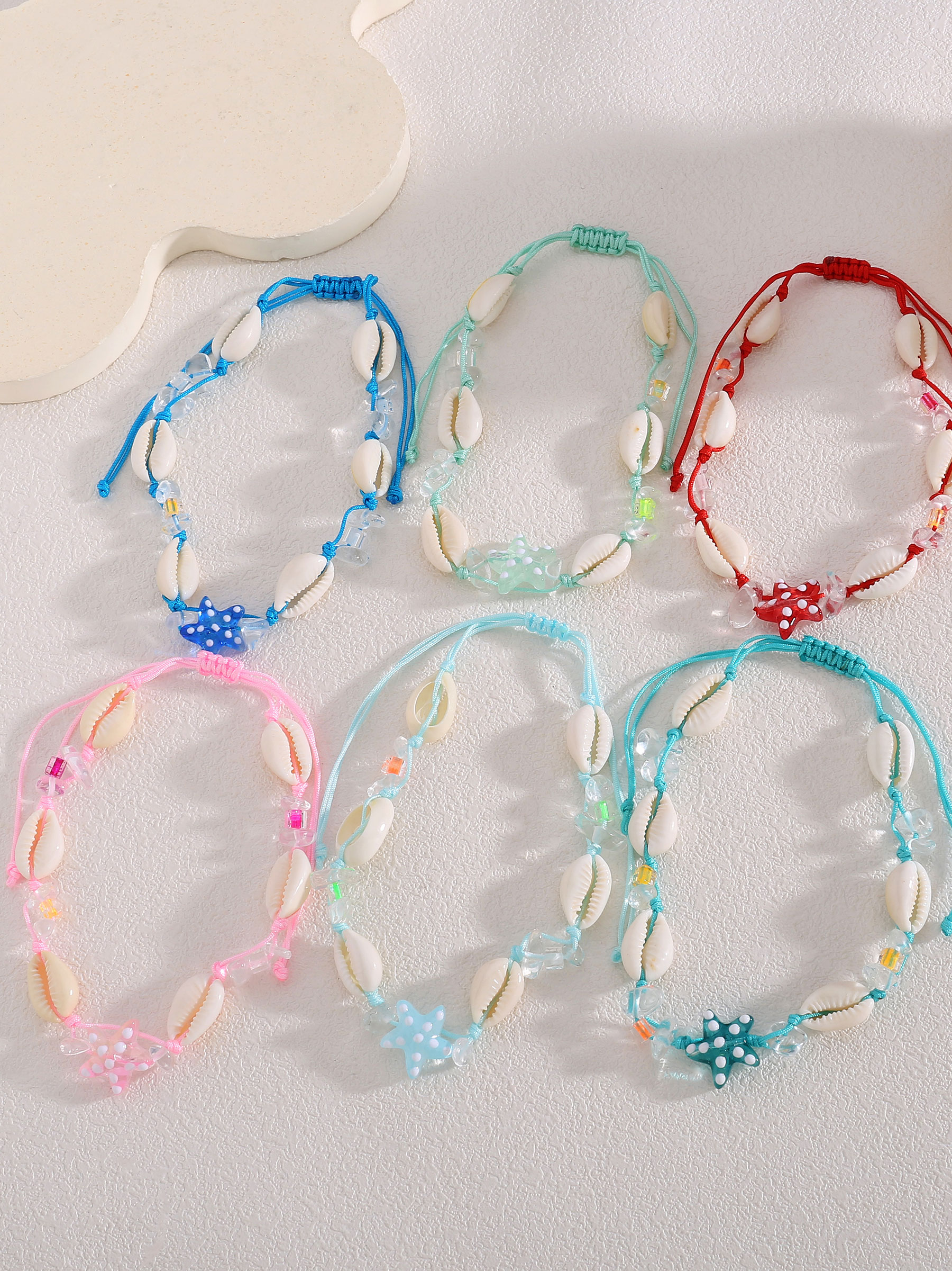 Mín. 12 Pulseras tobilleras Tornozeleiras ajustáveis estrela-do-mar cordão entrançado BS-SS-74009 Coleção: Primavera/Verão 2026. Ver preço