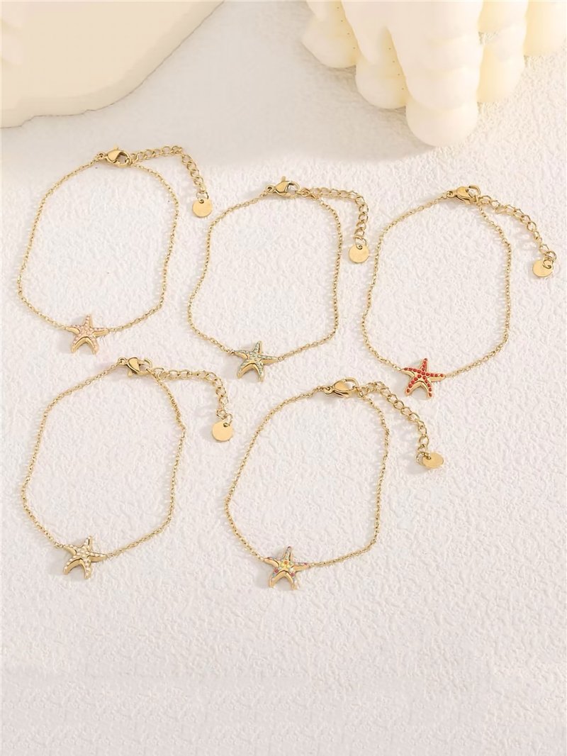 Pulsera de cadena estrella de mar esmaltada - Acero inoxidable Pulsera de cadena estrella de mar esmaltada - Acero inoxidable