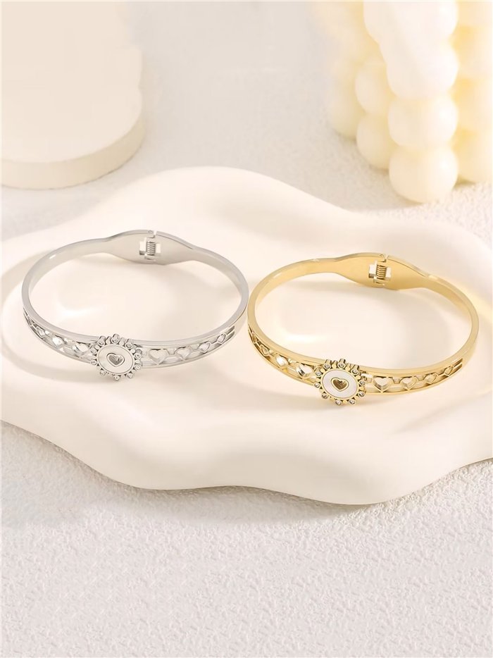 Detalhes da pulseira rígida coração de madre pérola com zircônias - aço inoxidável BS-TG067-TG068