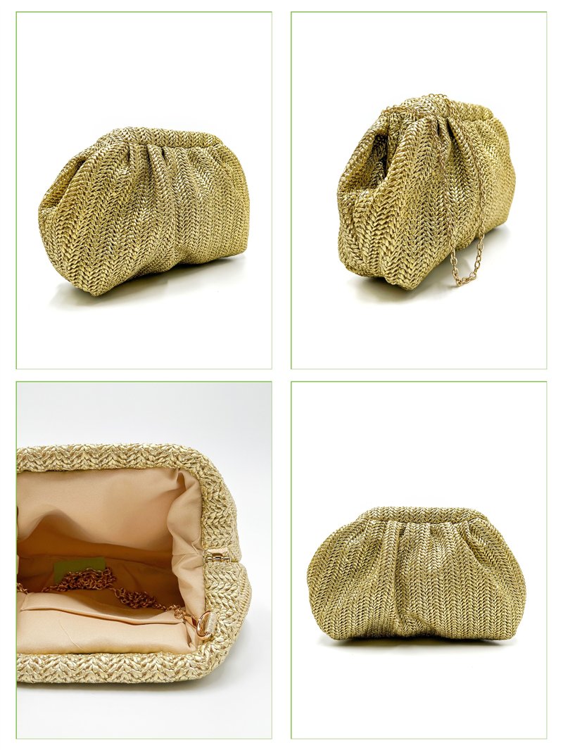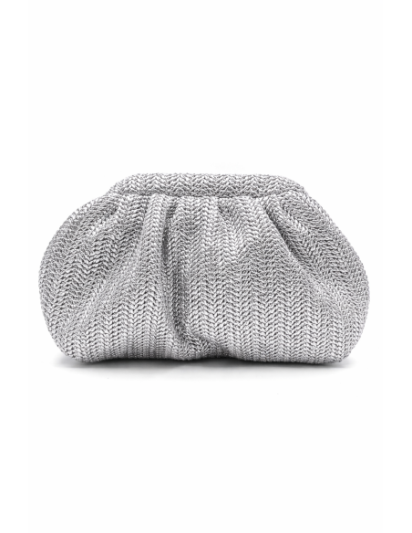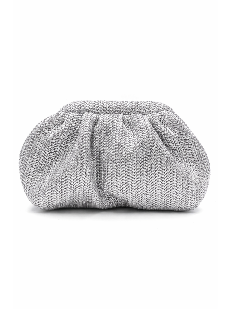 Bolsa de noite. Tecido com efeito ráfia. Design franzido. Estilo clutch.