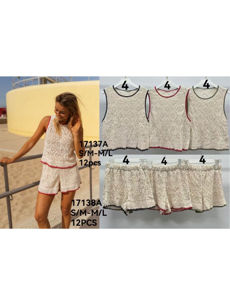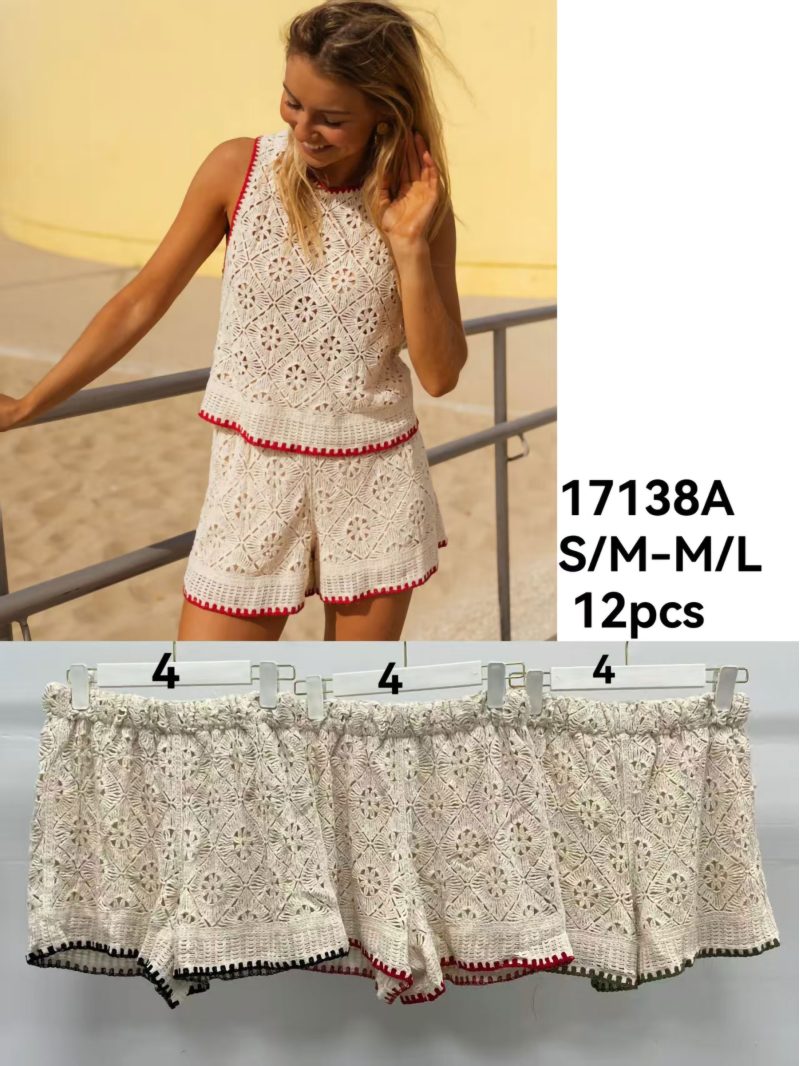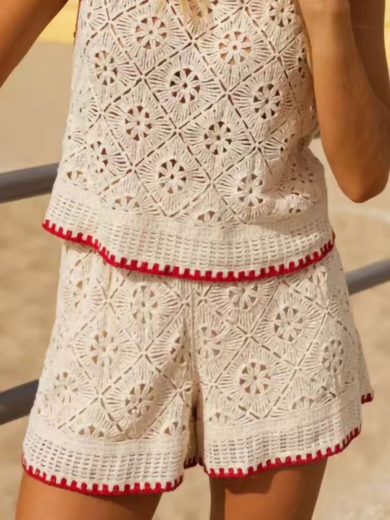 Calções de crochê com acabamento contrastante