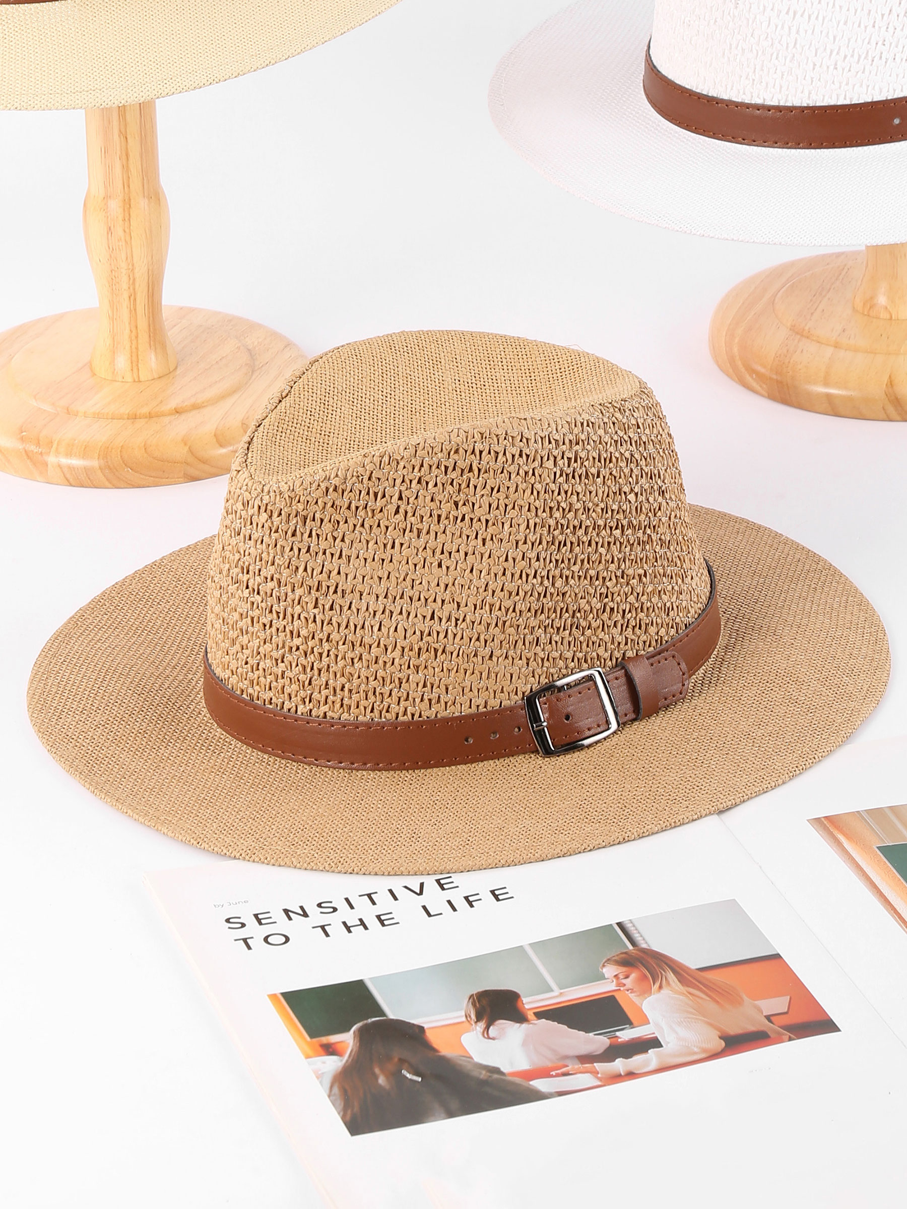 Chapéu fedora de ráfia com fivela
